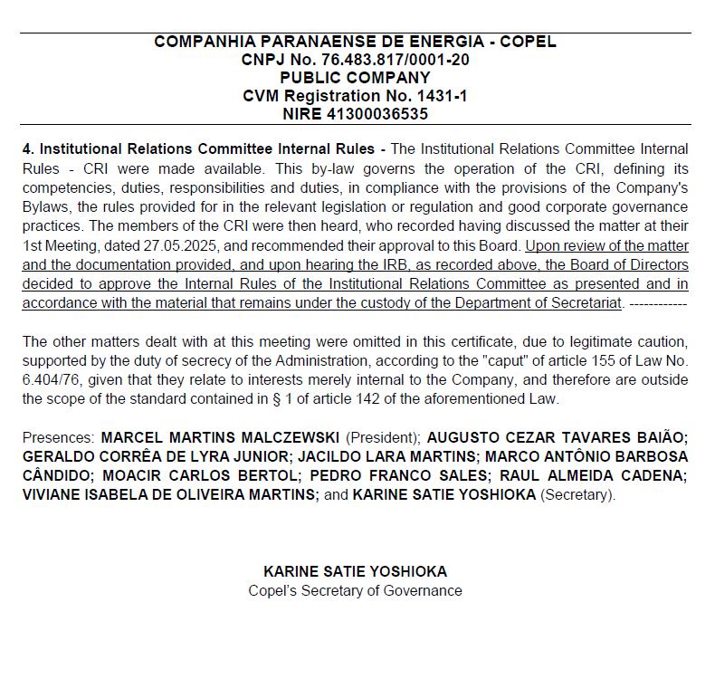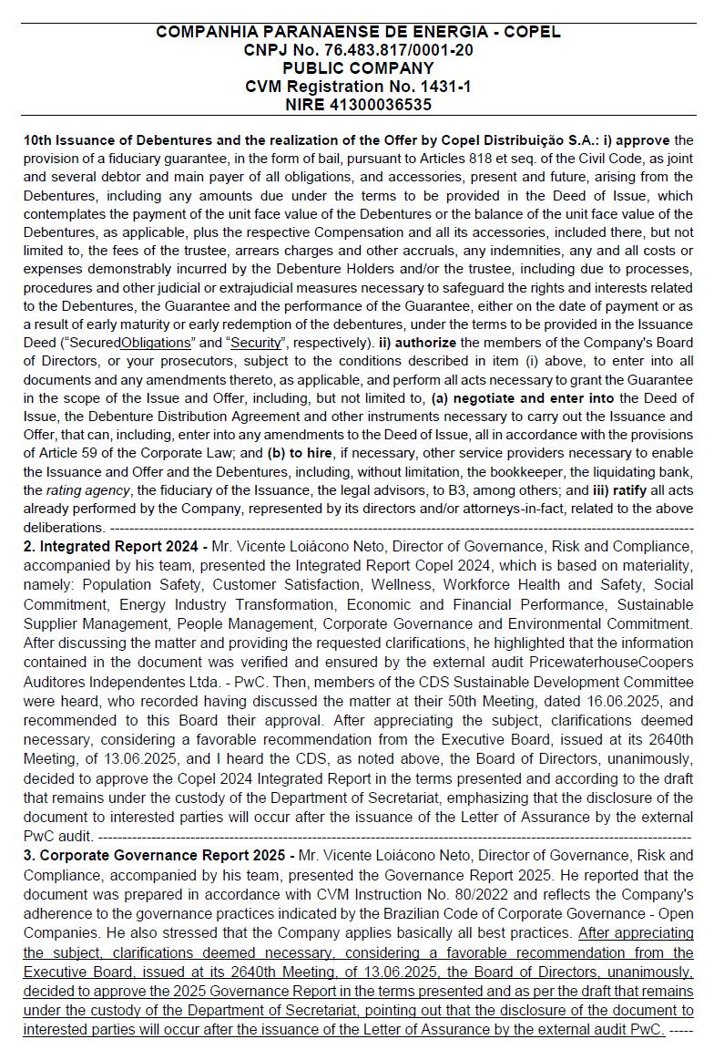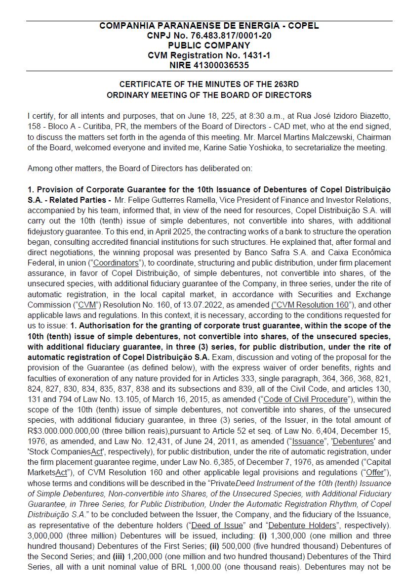 COMPANHIA PARANAENSE DE ENERGIA – COPEL