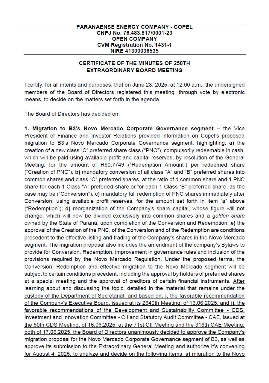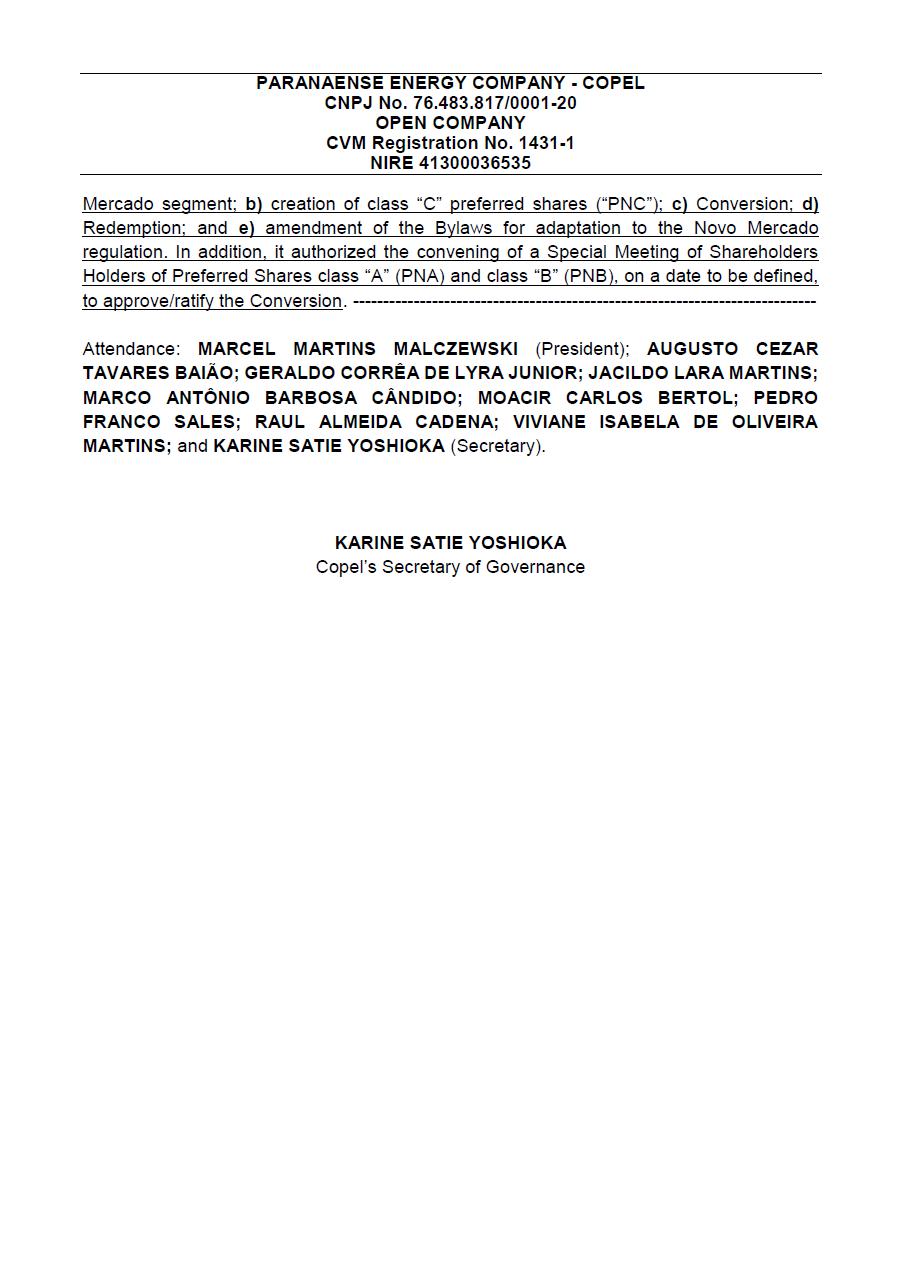 COMPANHIA PARANAENSE DE ENERGIA