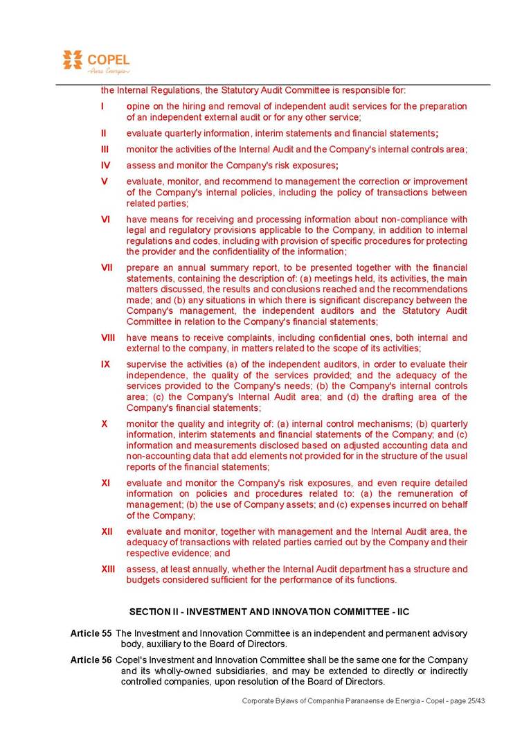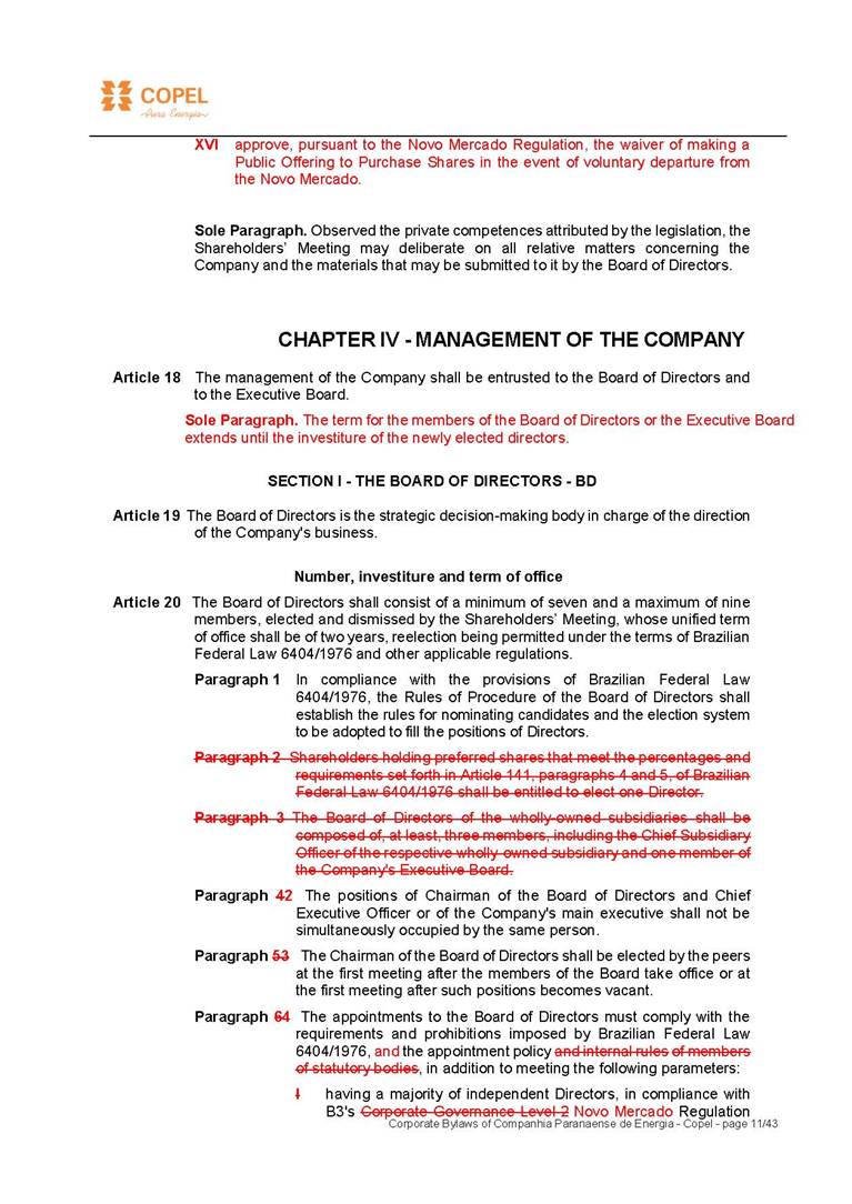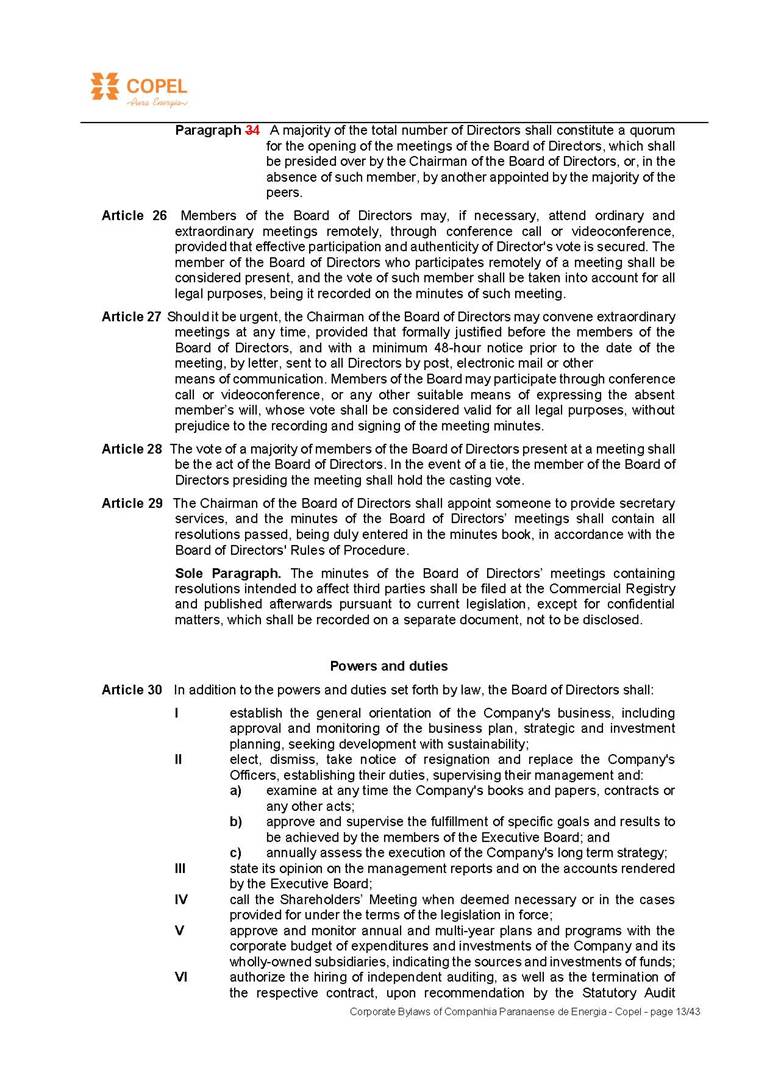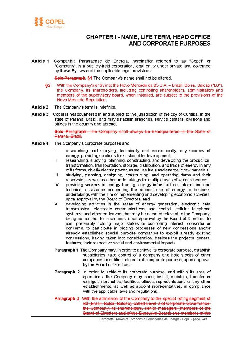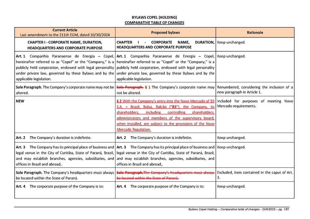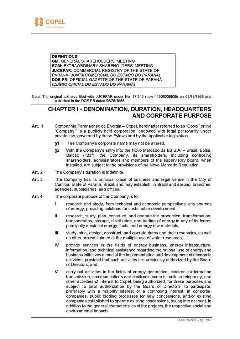 COMPANHIA PARANAENSE DE ENERGIA – COPEL