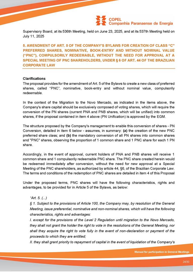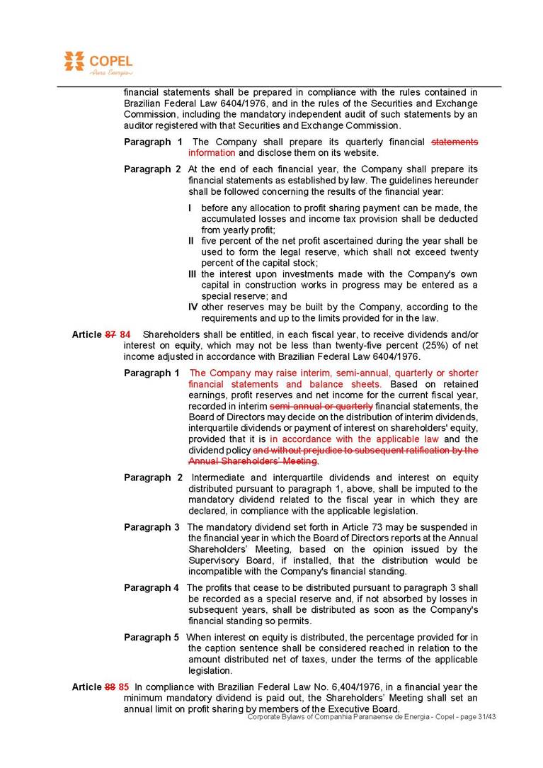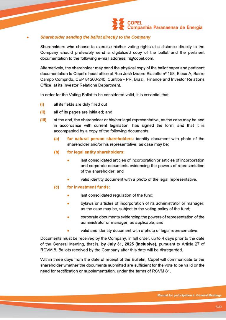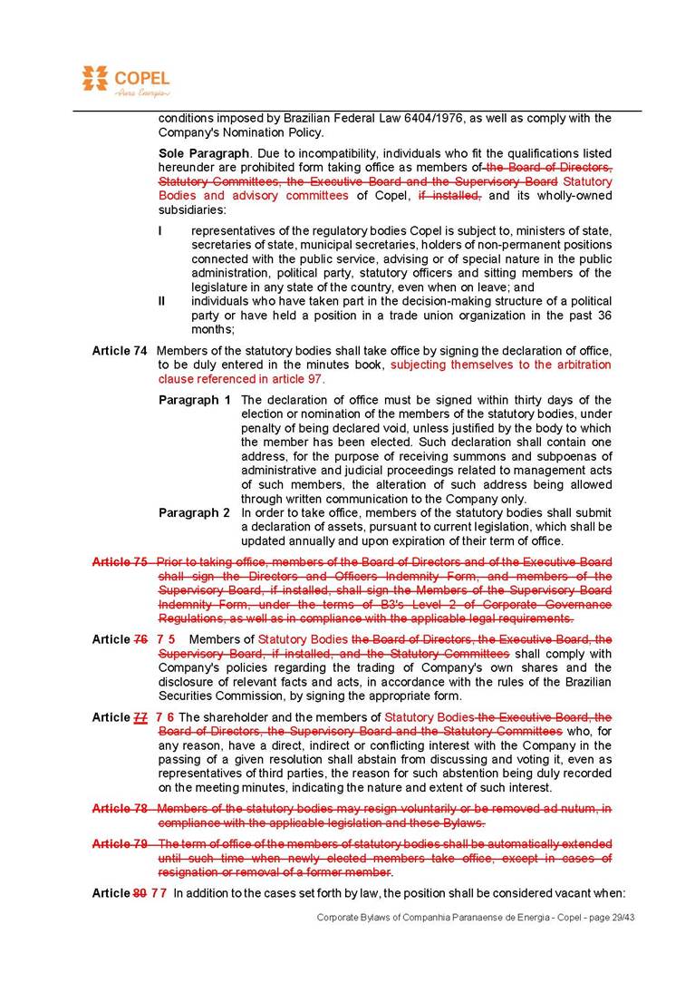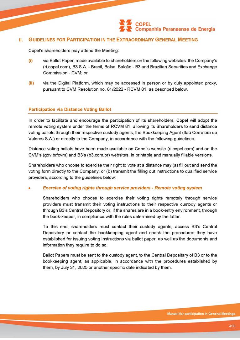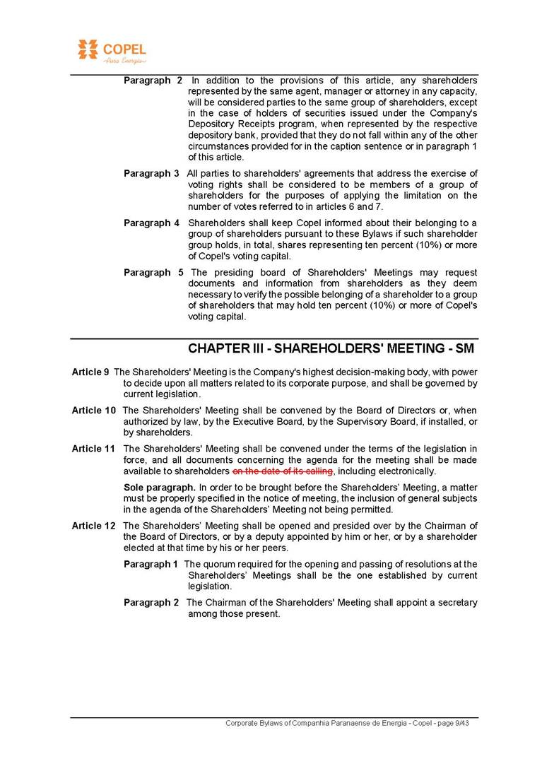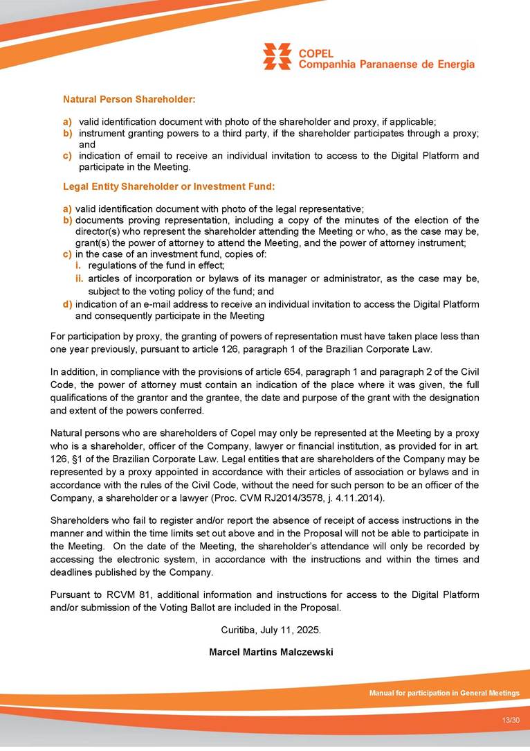 COMPANHIA PARANAENSE DE ENERGIA – COPEL