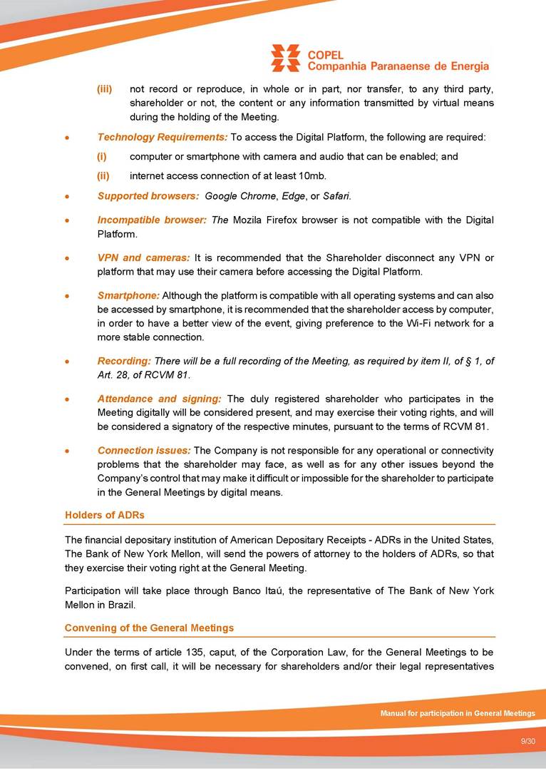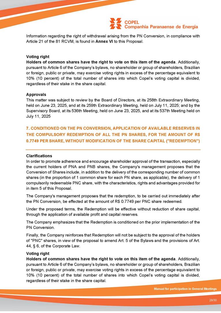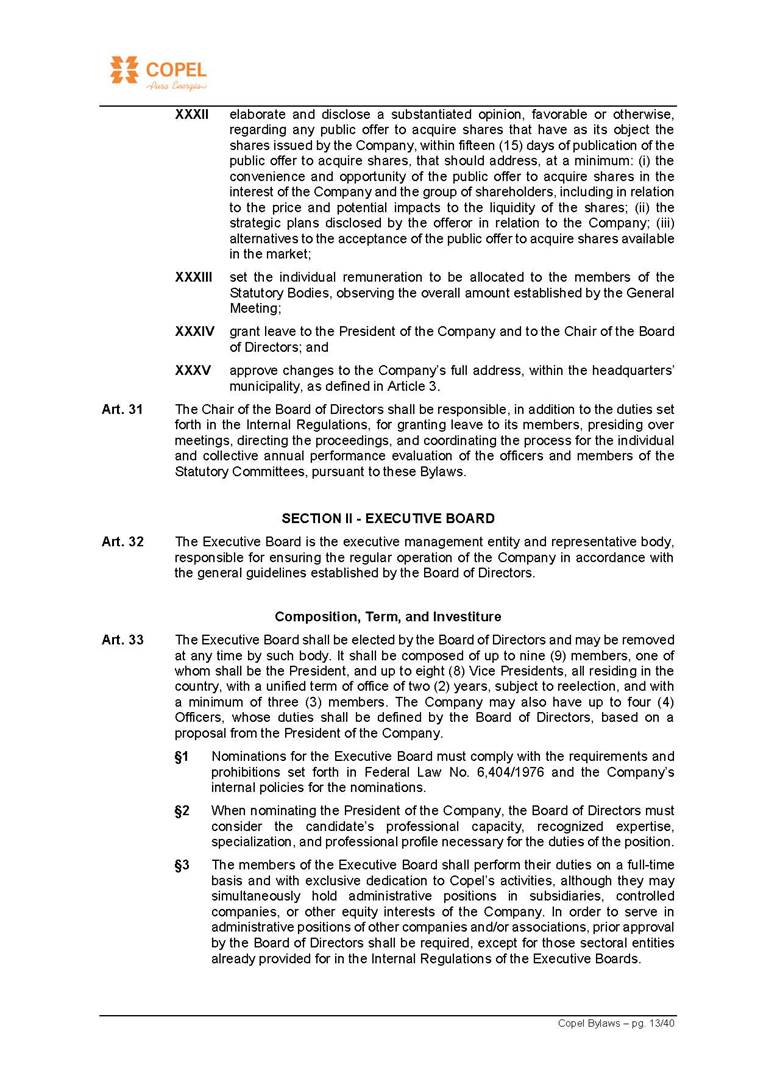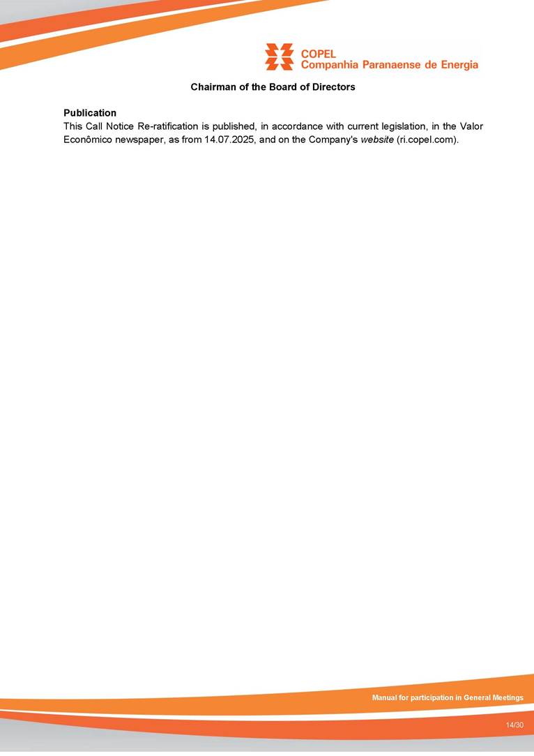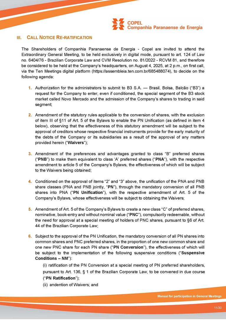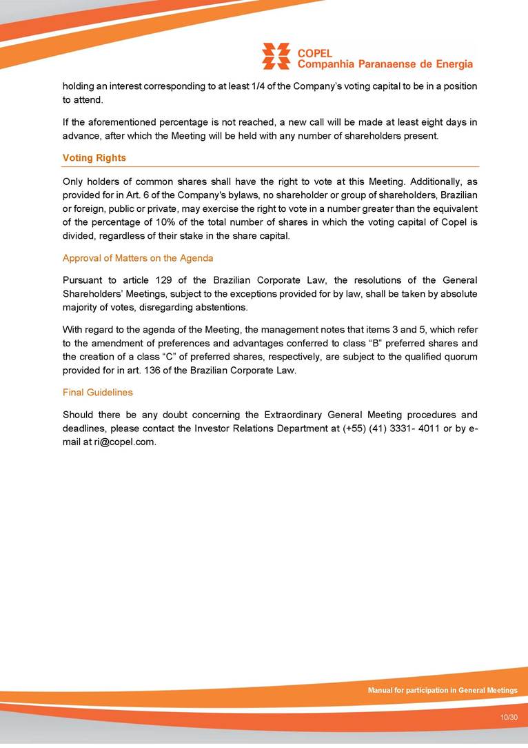 COMPANHIA PARANAENSE DE ENERGIA – COPEL