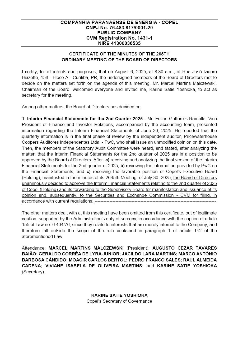 COMPANHIA PARANAENSE DE ENERGIA