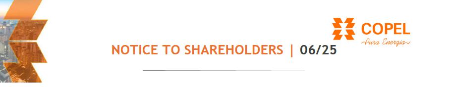 COMPANHIA PARANAENSE DE ENERGIA - COPEL (“the Company”), in addition to Material Fact No. 9/25, disclosed on August 22, 2025, and Shareholder Notice No. 05/25 disclosed on August 25, 2025, hereby informs its shareholders and the market in general of the following: