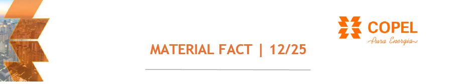 COMPANHIA PARANAENSE DE ENERGIA – COPEL (“Company”), in continuity with Material Facts No. 4/25, 6/25, 7/25, 8/25, 9/25, and 11/25, and in compliance with paragraph 4 of Article 157 of Law No. 6,404, dated December 15, 1976 (“Lei das S.A.”), and with the provisions of the Brazilian Securities and Exchange Commission (“CVM”) Resolution No. 44, dated August 23, 2021, as amended, and considering that, as of this date, the Company has obtained the final consents (“Waivers”) from creditors whose financial instruments provided for early maturity of the Company’s or its subsidiaries’ debts due to the approval of matters at the Extraordinary General Meeting held on August 22, 2025 (“EGM”), hereby informs its shareholders and the market in general that the schedule for the mandatory conversion of all Class “B” preferred shares (“PNB”) into Class “A” preferred shares (“PNA”) (“PN Unification”) will follow the timeline below: