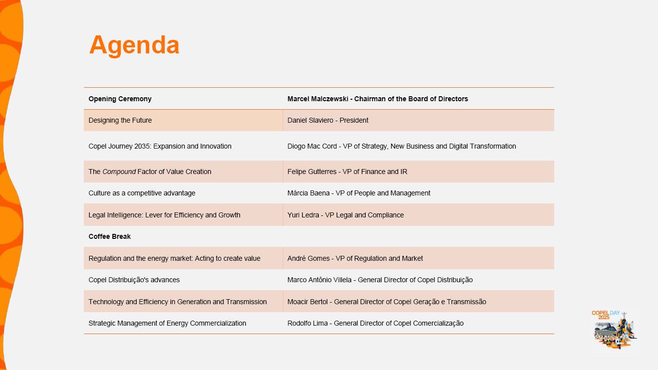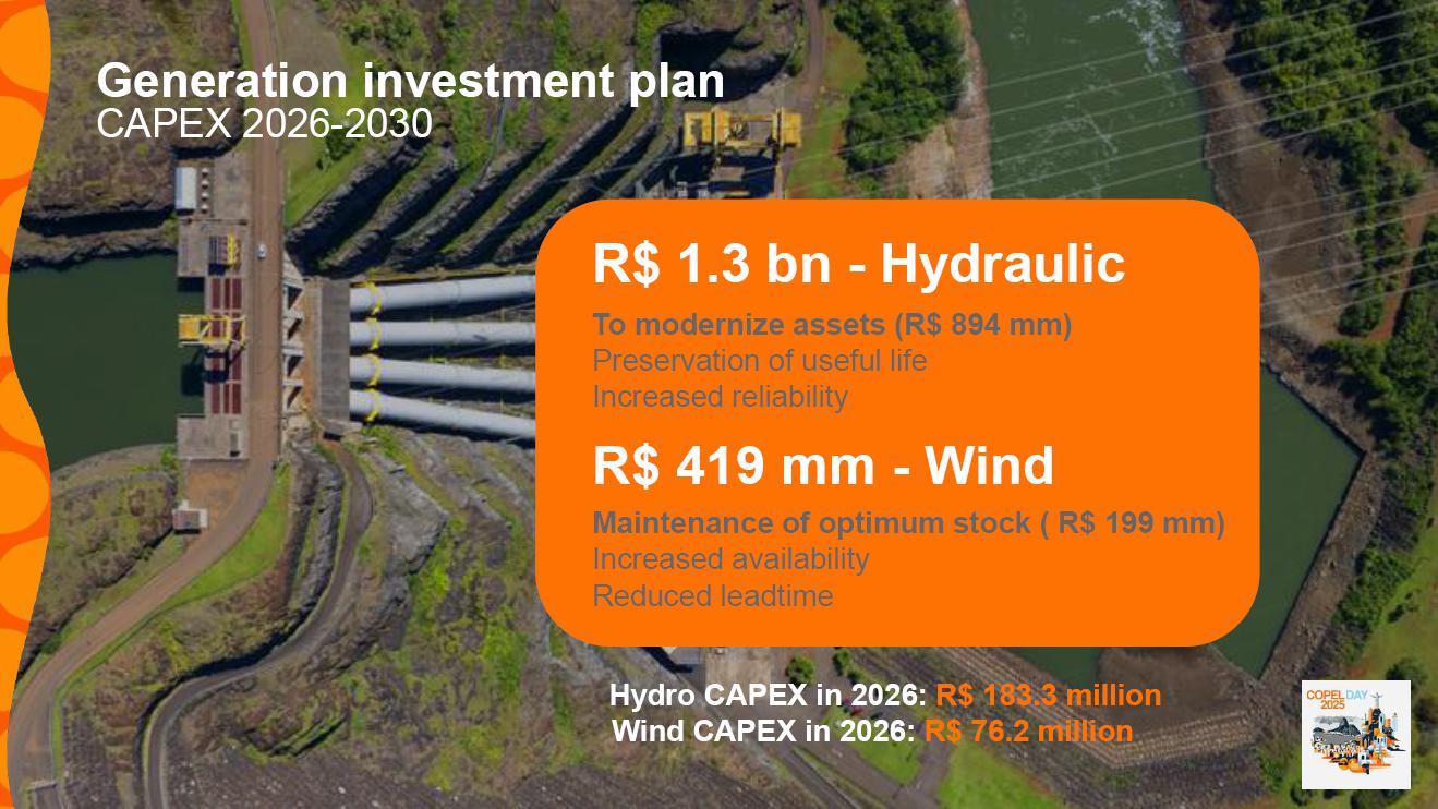 These goals have already been included in the presentation for Copel Day 2025, available on the Company's Investor Relations website at ri.copel.com/publicacoes-e-documentos/apresentacoes/, and the most relevant ones can be found on the following pages of the document:
