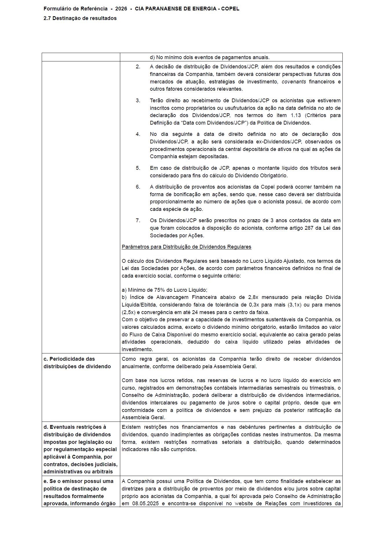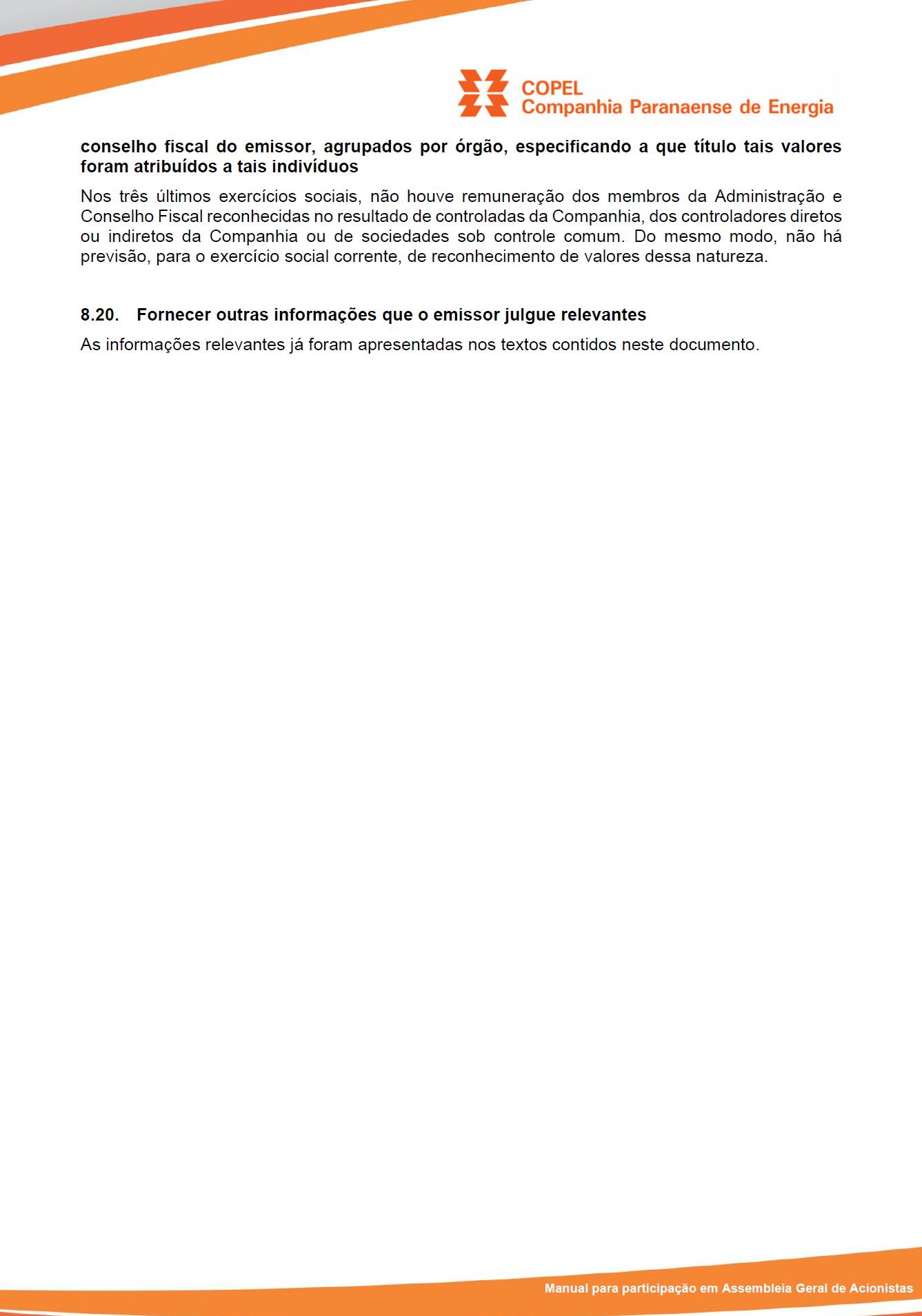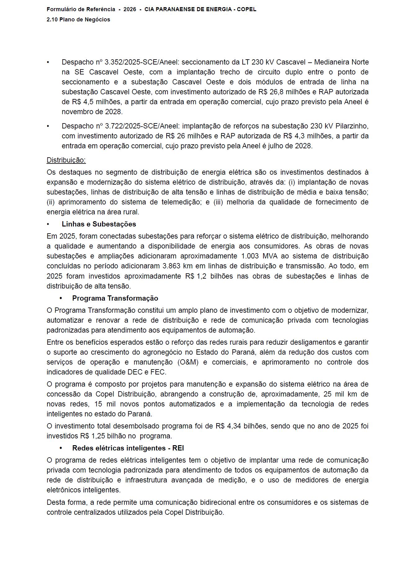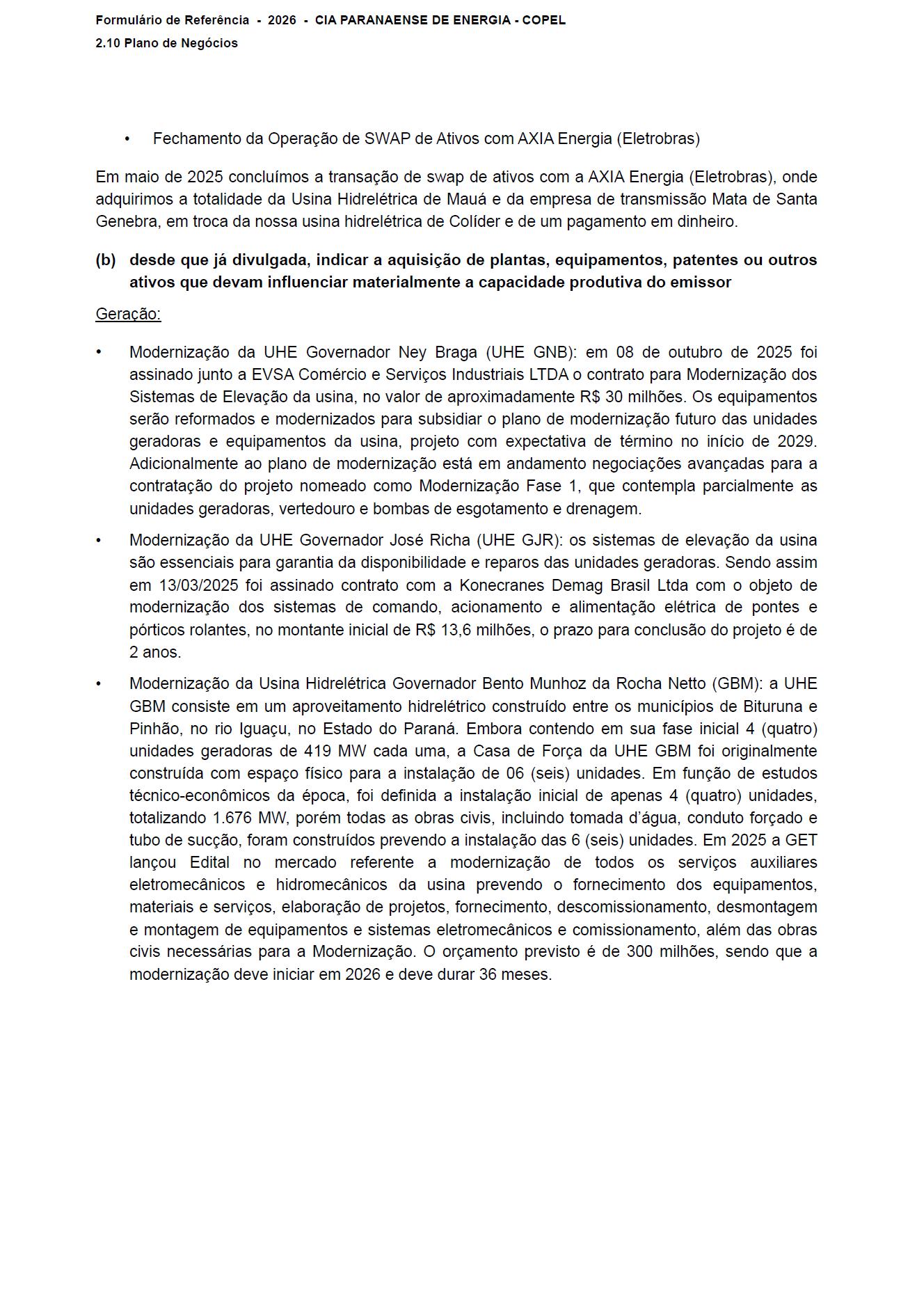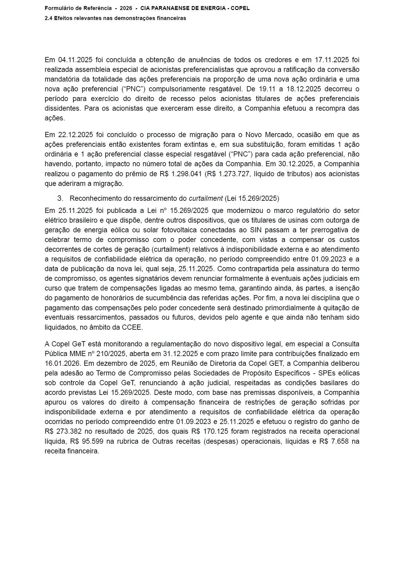 MANAGEMENT'S PROPOSAL AND MANUAL FOR PARTICIPATION IN GENERAL MEETINGS 71st Annual General Meeting 213th Extraordinary General Meeting April 23, 2026 Manual for participation in General Meetings 2/26 TABLE OF CONTENTS I. Message from the Management .............................................................................................. 3 II. Guidance for Participation in the General Meeting ................................................................ 4 Participation via Ballot Paper .................................................................................................. 4 Participation via Digital Platform ............................................................................................. 6 Holders of ADRs…………………………………………………………………………………………9 Convening of the General Meeting …………………………………………………………… . ……9 Voting Rights …….……………………………………………………………………………………. 10 Approval of the Matters on the Agenda …..…………………………………………………….…10 Final guidelines……………………………………………………………………………….………..10 III. Call Notice ............................................................................................................................... 11 IV. Management's Proposal ....................................................................................................... 14 V. Annex ..................................................................................................................................... 27 Manual for participation in General Meetings 3/26 I. MESSAGE FROM THE MANAGEMENT Dear Shareholder: It is with immense pleasure that I present to you this document containing the Management's Proposal and Manual for participation in General Shareholders’ Meetings of the Companhia Paranaense de Energia - Copel, with general guidance for an effective participation and exercise of the vote. This document has been prepared based on Copel's Corporate Governance policy, last updated in 2025, which is founded on integrity, transparency, fairness, accountability, and sustainability. The Proposal aims to present, in a clear and brief way, information related to the Company’s Shareholders’ Meeting, offering contributions that help the understanding of the proposals for resolution, encouraging the participation of shareholders in the events on the Company's corporate agenda. The matters to be presented for resolution of shareholders are described in the Call Notice and in the Management’s Proposal. Copel’s 71st AGM and 213rd Extraordinary General Meeting - EGM will be called to take place, on first call, on April 23, 2026, at 2pm, and will be held exclusively digitally, with the participation of its shareholders virtually, through the Ten Meetings digital platform, without prejudice to the possibility of exercising the vote by means of a Distance Voting Ballot. It is also important to mention that the Meeting will be attended, among others, by members of the Executive Board and representatives of the Supervisory Board, the Statutory Audit Committee and the independent auditor, who will be in a position to provide additional clarifications on the matters on the agenda, in accordance with their respective duties. Your participation is very important, considering that issues relevant to the Company and its shareholders will be dealt with in this Meeting. Yours sincerely, Marcel Martins Malczewski Chairman of the Board of Directors Manual for participation in General Meetings 4/26 II. GUIDANCE FOR PARTICIPATION IN THE GENERAL MEETING Copel’s shareholders may take part in the General Meeting: (i) via Ballot Paper, made available to shareholders on the following websites: the Company’s (ri.copel.com), B3 S.A. - Brasil, Bolsa, Balcão - B3 and Brazilian Securities and Exchange Commission - CVM; or (ii) via Digital Platform, which may be accessed personally or by a duly appointed proxy, pursuant to CVM Resolution no. 81/2022 - RCVM 81, as described below. Participation via Ballot Paper In order to facilitate and encourage the participation of its shareholders, Copel will adopt the remote voting system under the terms of RCVM 81, allowing its Shareholders to send distance voting ballots through their respective custody agents, the Bookkeeping Agent (Itaú Corretora de Valores S.A.) or directly to the Company, in accordance with the following guidelines: Distance voting ballots regarding the AGM and the EGM have been made available on Copel’s website (ri.copel.com) and on CVM's (gov.br/cvm) and B3's (b3.com.br) websites, in printable and manually fillable versions. Shareholders who choose to exercise their right to vote at a distance may (a) fill out and send the voting form directly to the Company, or (b) transmit the filling out instructions to qualified service providers, according to the guidelines below: • Exercise of voting rights through service providers - Remote voting system Shareholders who choose to exercise their voting rights remotely through service providers must transmit their voting instructions to their respective custody agents or through B3's Central Depository or, if the shares are in a book-entry environment, through the bookkeeper, in compliance with the rules determined by the latter. To this end, shareholders must contact their custody agents, access B3's Central Depository or contact the bookkeeping agent and check the procedures they have established for issuing voting instructions via ballot paper, as well as the documents and information they require to do so. The Ballot Papers must be sent to the custody agent, to the Central Depositary of B3 or to the bookkeeping agent, as applicable, in accordance with the procedures established by them, by April 19, 