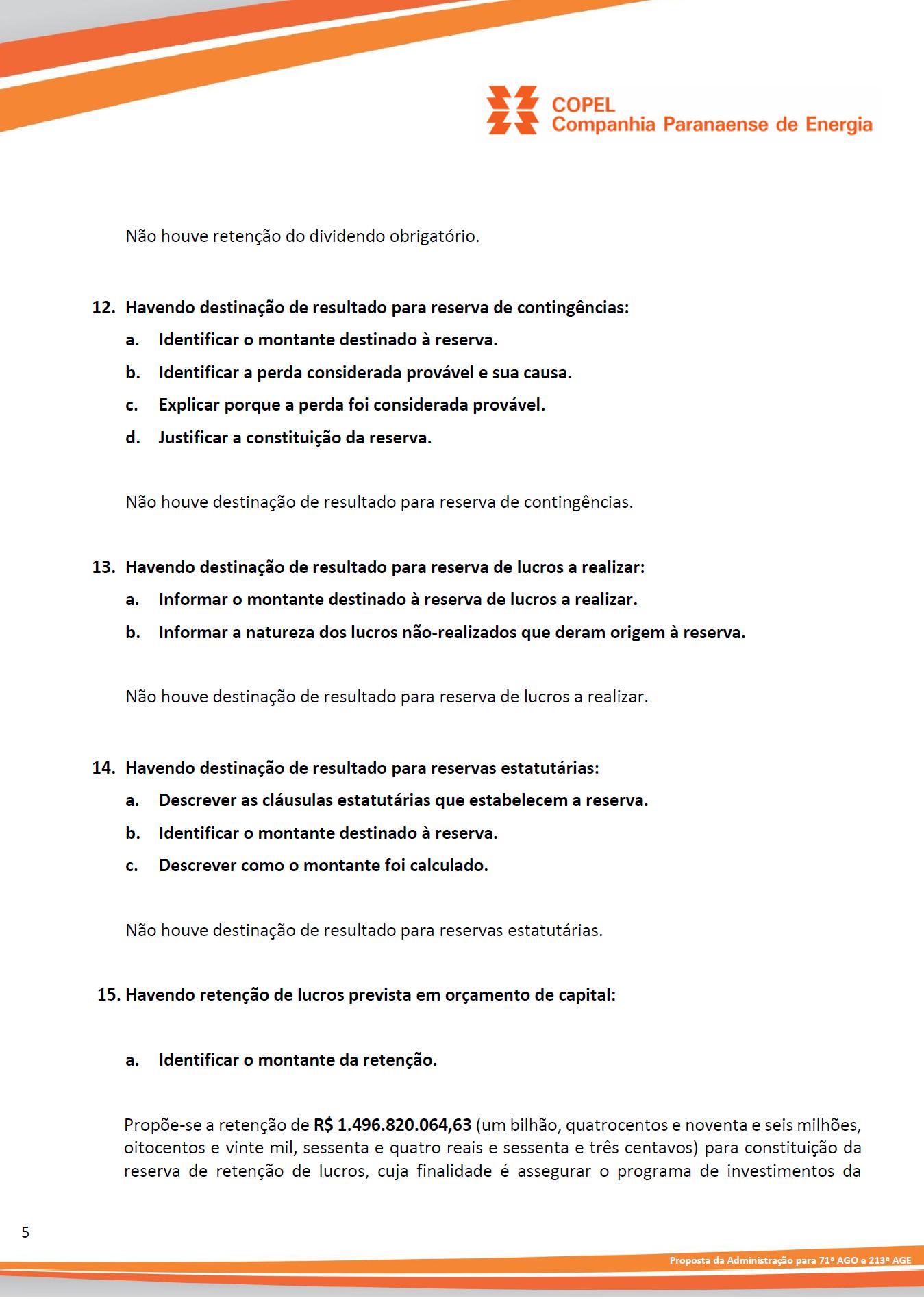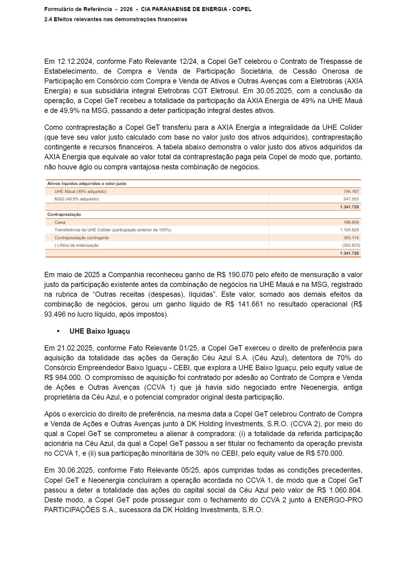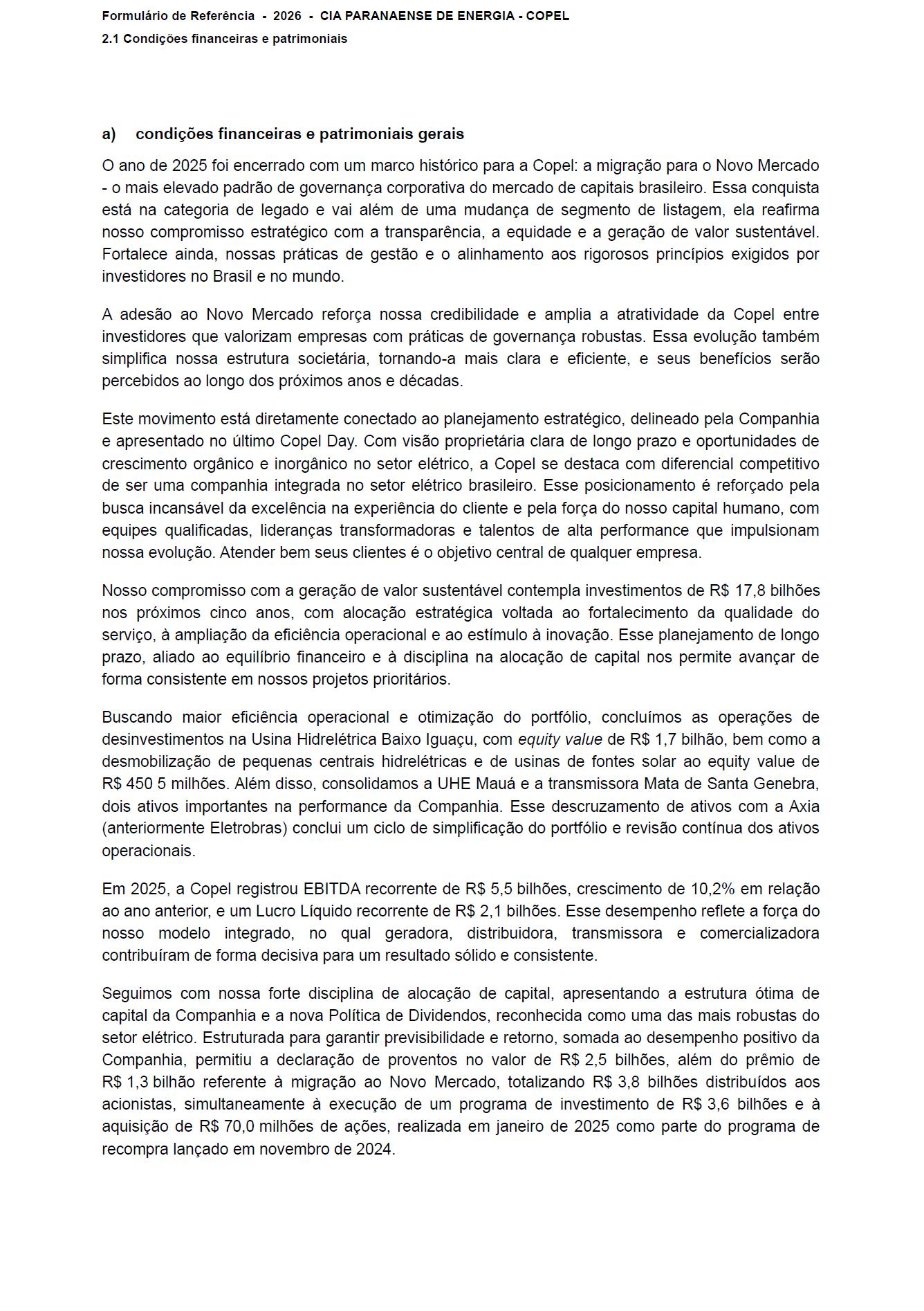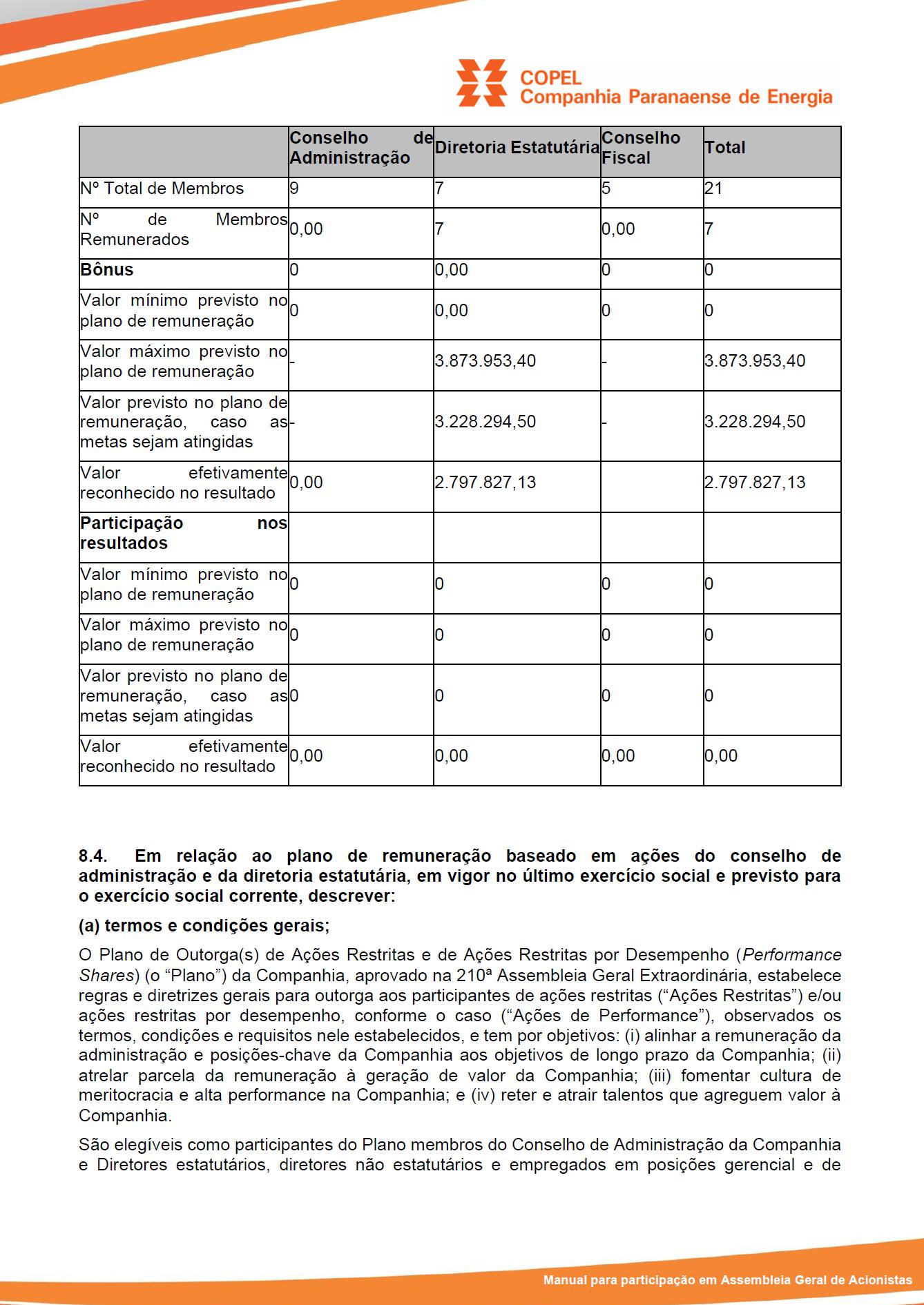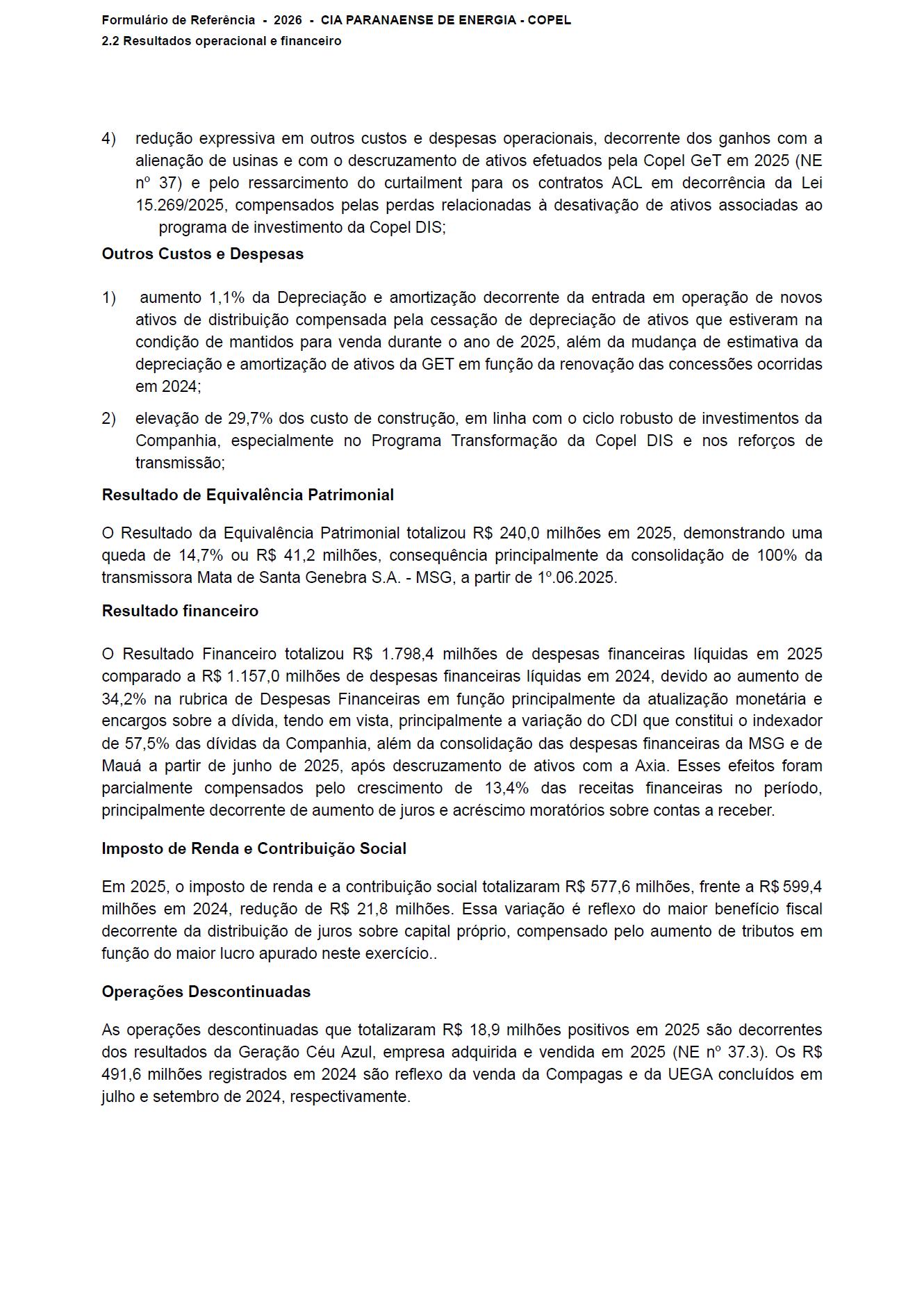 MANAGEMENT'S PROPOSAL AND MANUAL FOR PARTICIPATION IN GENERAL MEETINGS 71st Annual General Meeting 213th Extraordinary General Meeting April 23, 2026 Manual for participation in General Meetings 2/26 TABLE OF CONTENTS I. Message from the Management .............................................................................................. 3 II. Guidance for Participation in the General Meeting ................................................................ 4 Participation via Ballot Paper .................................................................................................. 4 Participation via Digital Platform ............................................................................................. 6 Holders of ADRs…………………………………………………………………………………………9 Convening of the General Meeting …………………………………………………………… . ……9 Voting Rights …….……………………………………………………………………………………. 10 Approval of the Matters on the Agenda …..…………………………………………………….…10 Final guidelines……………………………………………………………………………….………..10 III. Call Notice ............................................................................................................................... 11 IV. Management's Proposal ....................................................................................................... 14 V. Annex ..................................................................................................................................... 27 Manual for participation in General Meetings 3/26 I. MESSAGE FROM THE MANAGEMENT Dear Shareholder: It is with immense pleasure that I present to you this document containing the Management's Proposal and Manual for participation in General Shareholders’ Meetings of the Companhia Paranaense de Energia - Copel, with general guidance for an effective participation and exercise of the vote. This document has been prepared based on Copel's Corporate Governance policy, last updated in 2025, which is founded on integrity, transparency, fairness, accountability, and sustainability. The Proposal aims to present, in a clear and brief way, information related to the Company’s Shareholders’ Meeting, offering contributions that help the understanding of the proposals for resolution, encouraging the participation of shareholders in the events on the Company's corporate agenda. The matters to be presented for resolution of shareholders are described in the Call Notice and in the Management’s Proposal. Copel’s 71st AGM and 213rd Extraordinary General Meeting - EGM will be called to take place, on first call, on April 23, 2026, at 2pm, and will be held exclusively digitally, with the participation of its shareholders virtually, through the Ten Meetings digital platform, without prejudice to the possibility of exercising the vote by means of a Distance Voting Ballot. It is also important to mention that the Meeting will be attended, among others, by members of the Executive Board and representatives of the Supervisory Board, the Statutory Audit Committee and the independent auditor, who will be in a position to provide additional clarifications on the matters on the agenda, in accordance with their respective duties. Your participation is very important, considering that issues relevant to the Company and its shareholders will be dealt with in this Meeting. Yours sincerely, Marcel Martins Malczewski Chairman of the Board of Directors Manual for participation in General Meetings 4/26 II. GUIDANCE FOR PARTICIPATION IN THE GENERAL MEETING Copel’s shareholders may take part in the General Meeting: (i) via Ballot Paper, made available to shareholders on the following websites: the Company’s (ri.copel.com), B3 S.A. - Brasil, Bolsa, Balcão - B3 and Brazilian Securities and Exchange Commission - CVM; or (ii) via Digital Platform, which may be accessed personally or by a duly appointed proxy, pursuant to CVM Resolution no. 81/2022 - RCVM 81, as described below. Participation via Ballot Paper In order to facilitate and encourage the participation of its shareholders, Copel will adopt the remote voting system under the terms of RCVM 81, allowing its Shareholders to send distance voting ballots through their respective custody agents, the Bookkeeping Agent (Itaú Corretora de Valores S.A.) or directly to the Company, in accordance with the following guidelines: Distance voting ballots regarding the AGM and the EGM have been made available on Copel’s website (ri.copel.com) and on CVM's (gov.br/cvm) and B3's (b3.com.br) websites, in printable and manually fillable versions. Shareholders who choose to exercise their right to vote at a distance may (a) fill out and send the voting form directly to the Company, or (b) transmit the filling out instructions to qualified service providers, according to the guidelines below: • Exercise of voting rights through service providers - Remote voting system Shareholders who choose to exercise their voting rights remotely through service providers must transmit their voting instructions to their respective custody agents or through B3's Central Depository or, if the shares are in a book-entry environment, through the bookkeeper, in compliance with the rules determined by the latter. To this end, shareholders must contact their custody agents, access B3's Central Depository or contact the bookkeeping agent and check the procedures they have established for issuing voting instructions via ballot paper, as well as the documents and information they require to do so. The Ballot Papers must be sent to the custody agent, to the Central Depositary of B3 or to the bookkeeping agent, as applicable, in accordance with the procedures established by them, by April 19, 