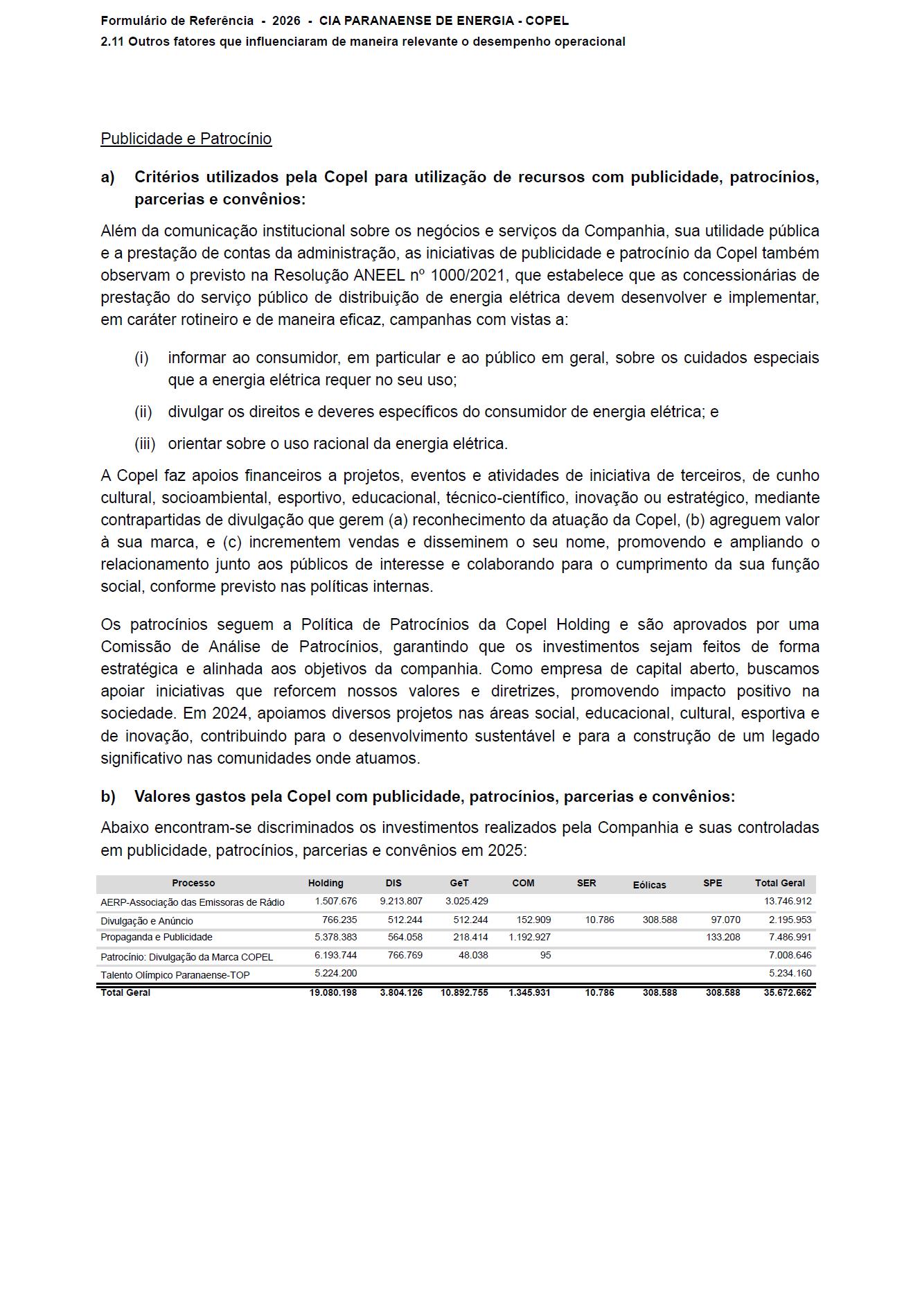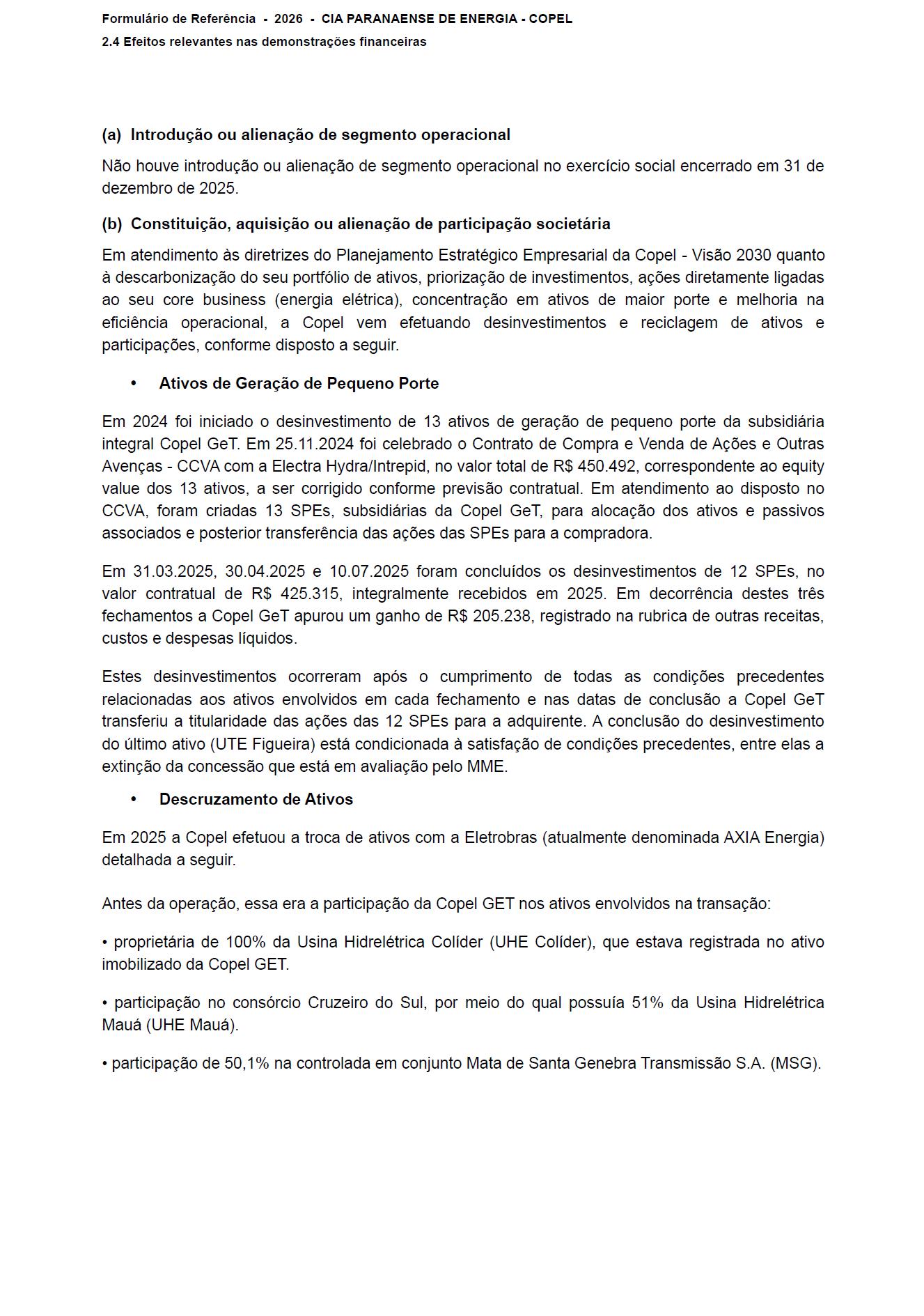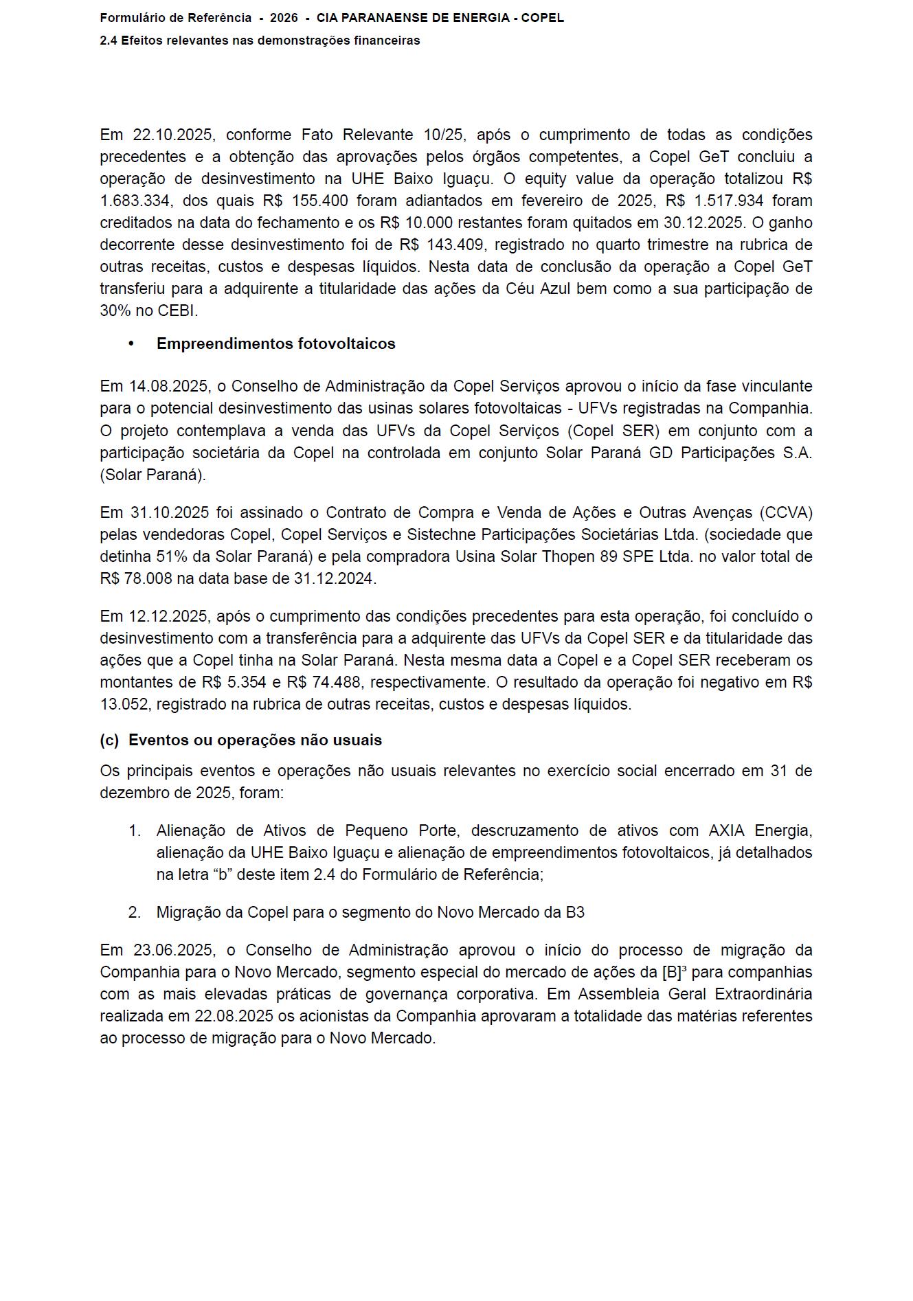 COMPANHIA PARANAENSE DE ENERGIA – COPEL