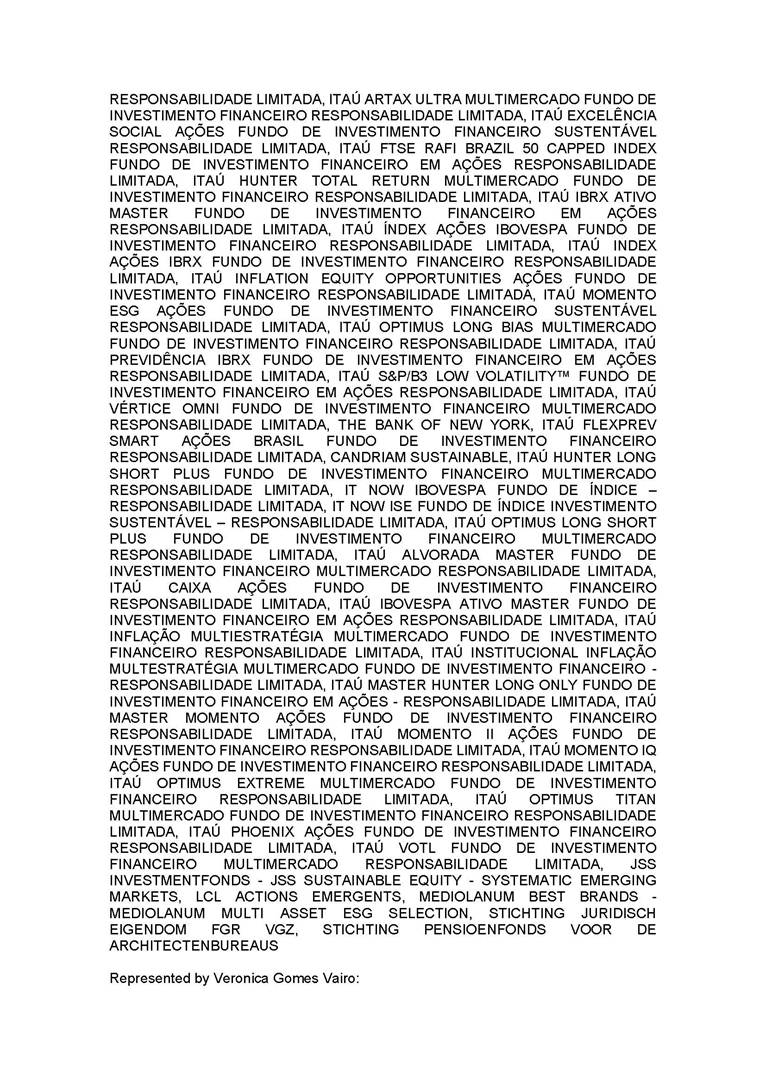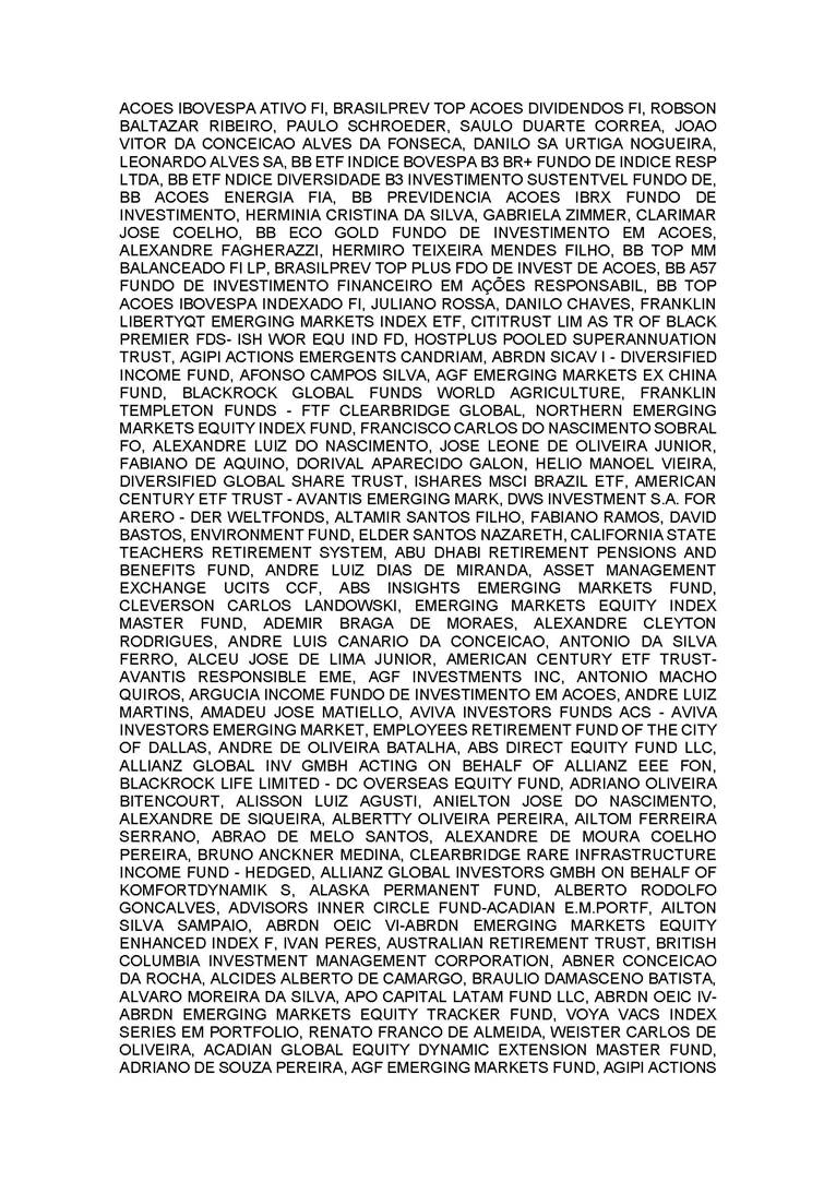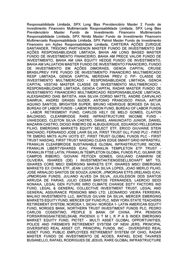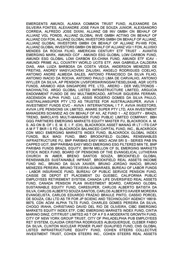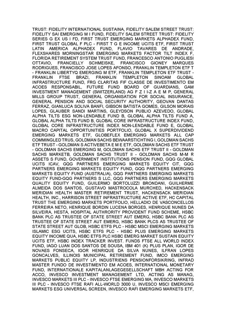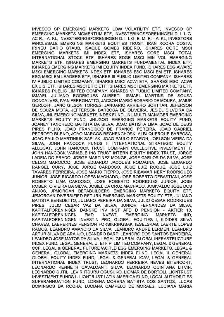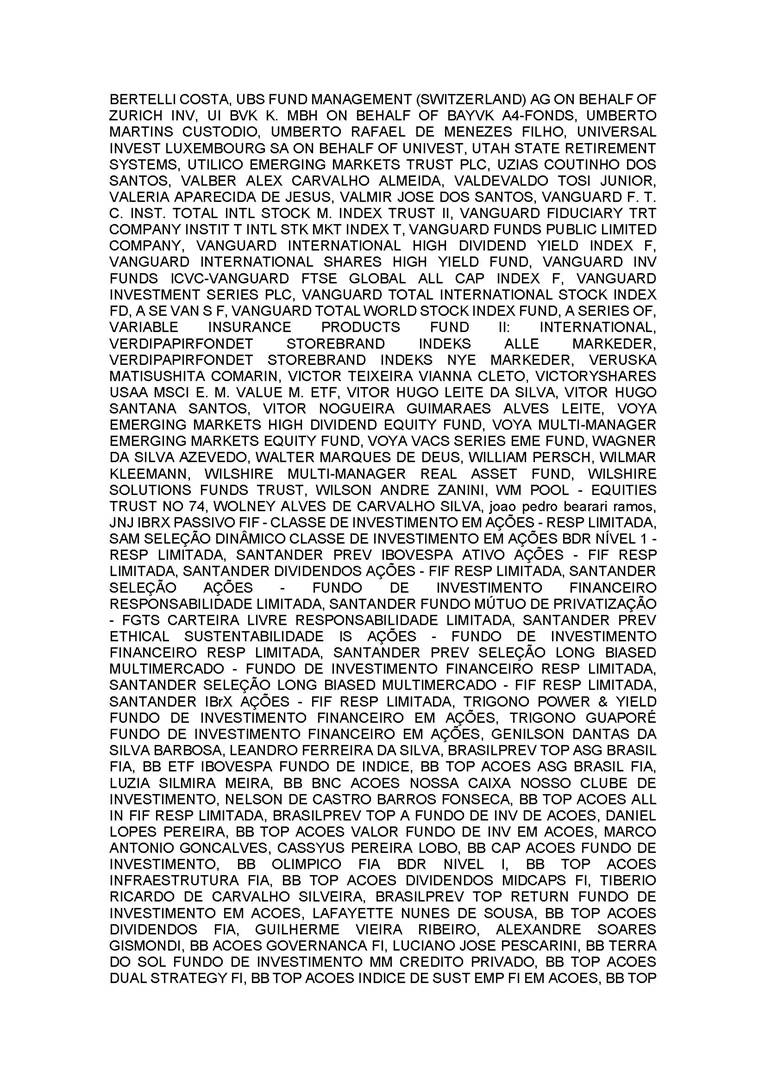 3.       QUORUM FOR CONVENING: Present: (A) At the Annual General Meeting: shareholders holding 1,637,841,174 common, registered, book-entry, and no-par-value shares issued by the Company, excluding treasury shares, representing approximately 68.93% of the voting capital; and (B) At the Extraordinary General Meeting: shareholders holding 1,623,097,896 common, registered, book-entry, and no-par-value shares issued by the Company, excluding treasury shares, representing approximately 68.31% of the voting capital, as evidenced by the signatures in the Company’s Shareholder Attendance Book.
