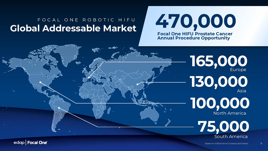 Focal One Answers an Unmet Need for a Large Underserved Patient Population P R O S TA TE C A N C E R Focal One HIFU Focal One HIFU 10 First - Line Treatment Progression from Active Surveillance Salvage Treatment