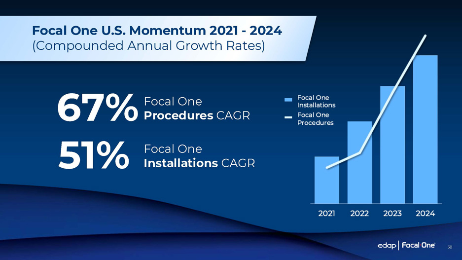 Focal One U.S. Momentum 2021 - 2024 (Compounded Annual Growth Rates) Focal One Procedures CAGR 38 Focal One Installations CAGR 67% 51%