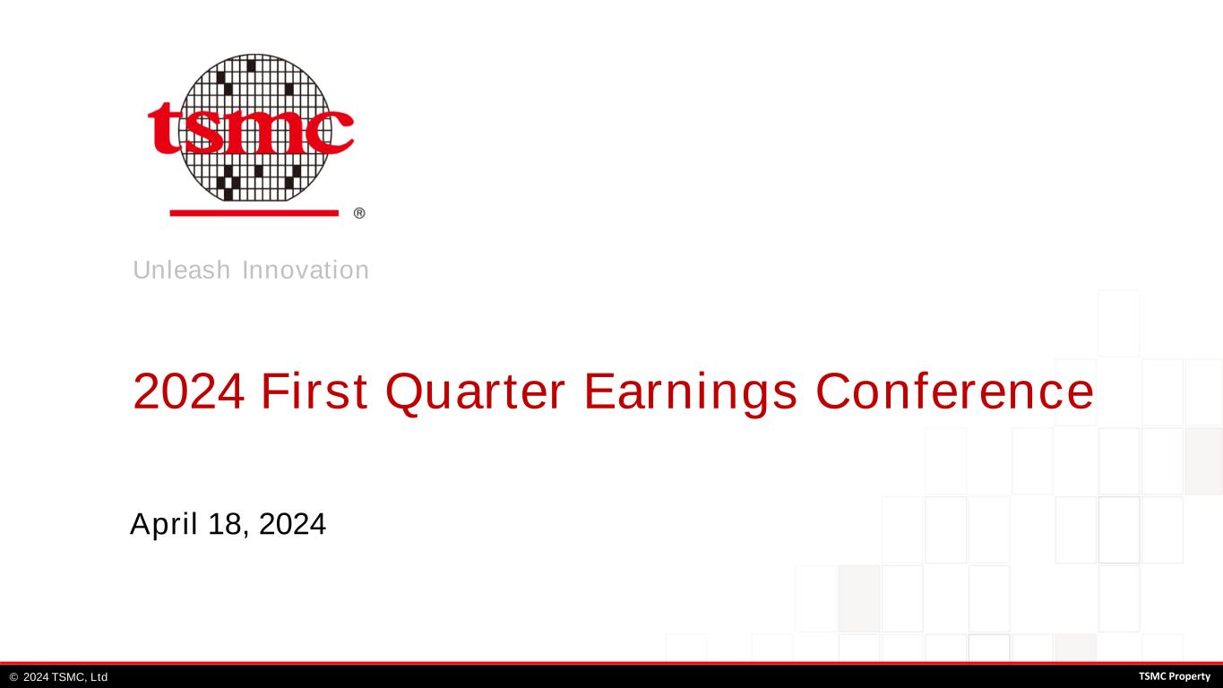 Unleash Innovation TSMC, Ltd© 02024 TSMC Property Unleash Innovation 2024 First Quarter Earnings Conference April 18, 2024