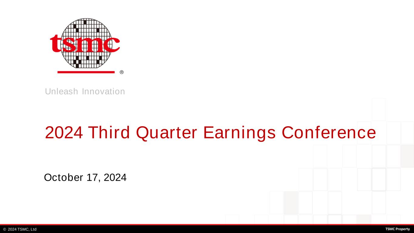 Unleash Innovation TSMC, Ltd© 02024 TSMC Property Unleash Innovation 2024 Third Quarter Earnings Conference October 17, 2024