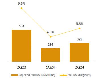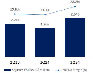 ·As a result, Adjusted EBITDA increased by 24.5% compared to the previous quarter, reaching R$346 million in 2Q24 and with an EBITDA margin of 28.0%. This represents an 8.4 p.p. increase in profitability which demonstrates the success of leveraging synergies from acquisitions and highlights the effectiveness of the segment's assertive commercial strategy in recent quarters.