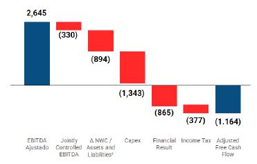 ¹ The concept of adjusted cash flow is calculated from Adjusted EBITDA, subtracting EBITDA of Jointly Controlled Companies, CAPEX, Income Tax, Financial Result and changes in Assets and Liabilities², excluding the effect of the Glencore advance.
