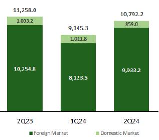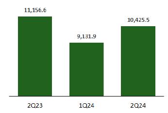 ·Sales volume, in turn, reached 10,792.2 thousand tons in 2Q24, 18.0% higher than the volume recorded in the first quarter of 2024, which is in line with seasonality and the operational improvement that has been recorded each quarter. Compared to 2Q23, there was a 4.1% decrease in sales volume, despite the strong reduction in the volume of purchases from third parties.