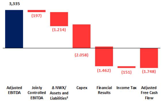 ¹ The concept of adjusted cash flow is calculated from Adjusted EBITDA, subtracting EBITDA of Jointly Controlled Companies, CAPEX, Income Tax, Financial Result and changes in Assets and Liabilities², excluding the effect of the Glencore advance.