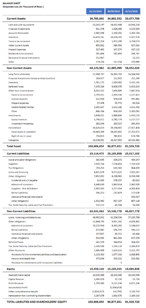 The comments address the Company's consolidated results for the fourth quarter and the year of 2024 (4Q24 and 2024) and the comparisons are for the fourth quarter of 2023 (4Q23), the year 2023 and the third quarter of 2024 (3Q24). The dollar exchange rate was R$ 4.84 on 12/31/2023; R$ 5.44 on 09/30/2024 and R$ 6.19 on 12/31/2024.