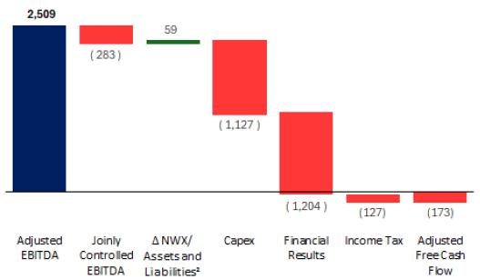 ¹ The concept of adjusted cash flow is calculated from Adjusted EBITDA, subtracting EBITDA of Jointly Controlled Companies, CAPEX, Income Tax, Financial Result and changes in Assets and Liabilities², excluding the effect of the Glencore advance.