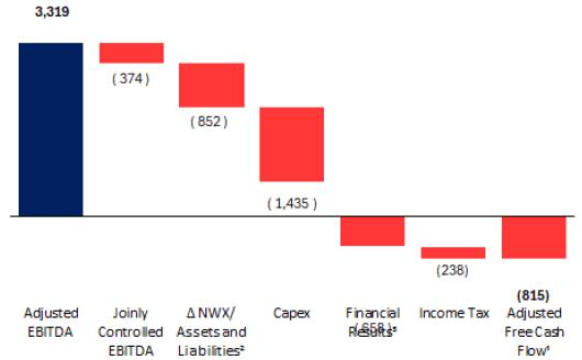 ¹ The concept of adjusted cash flow is calculated from Adjusted EBITDA, subtracting EBITDA of Jointly Controlled Companies, CAPEX, Income Tax, Financial Result and changes in Assets and Liabilities², excluding the effect of the Glencore advance.
