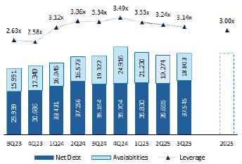 ³ Adjusted Net Debt and Adjusted Cash/Availabilities consider 37.49% of MRS, in addition to not considering Forfaiting and Drawn Risk operations.