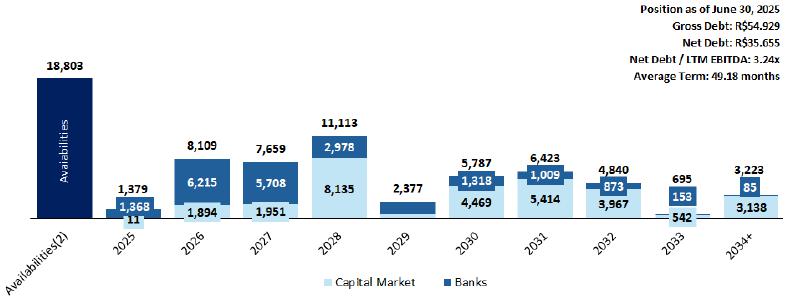 CSN remains very active in its objective of extending the amortization period, focusing on long-term operations and the local capital market. Among the main actions of 3Q25, the Company carried out new fundraising and refinanced bilateral contracts, extending amortization flows until 2030.