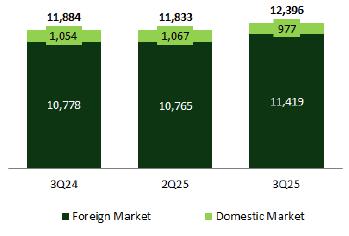 ·In 3Q25, Sales Volume reached 12,396 thousand tons, marking a 4.8% increase from the previous quarter and a 4.3% increase from the same period in 2024. This was the first time in history that the Company managed to exceed 12 million tons of sales in a single quarter, highlighting the significant efficiency gains in the flow of production, with Tecar (our bulk terminal) having reached the mark of 4 million tons shipped in a single month for the first time.