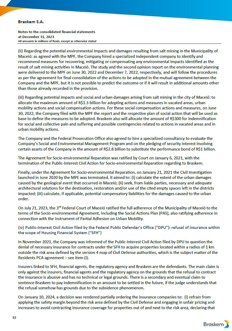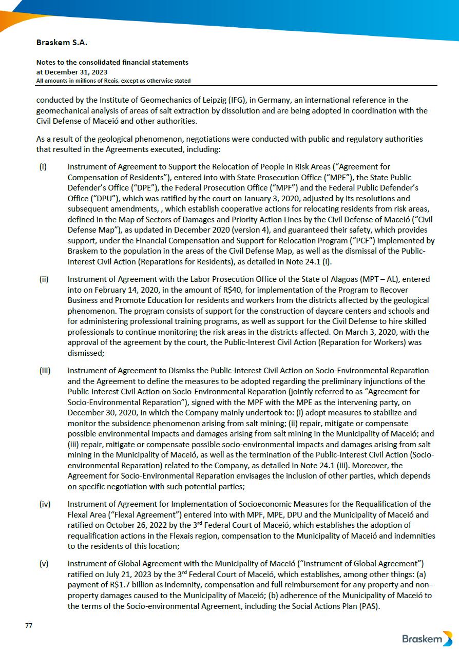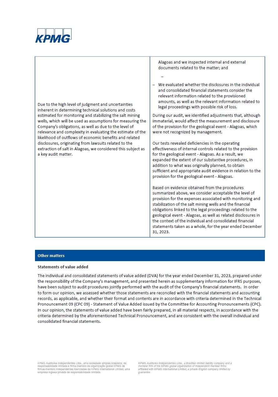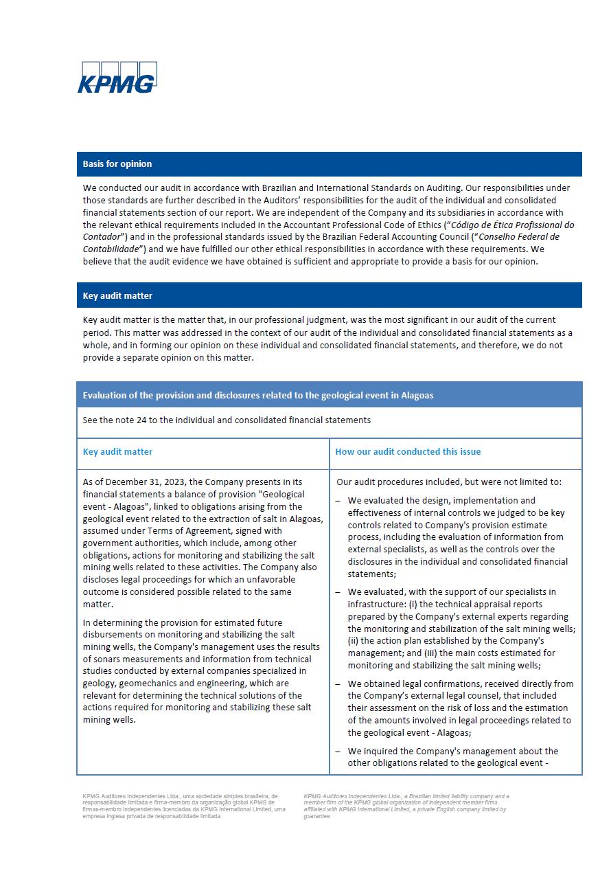This report on Form 6-K may contain forward-looking statements within the meaning of the Private Securities Litigation Reform Act of 1995. These statements are statements that are not historical facts, and are based on our management’s current view and estimates of future economic and other circumstances, industry conditions, company performance and financial results, including any potential or projected impact of the geological event in Alagoas and related legal proceedings and of COVID-19 on our business, financial condition and operating results. The words “anticipates,” “believes,” “estimates,” “expects,” “plans” and similar expressions, as they relate to the company, are intended to identify forward-looking statements. Statements regarding the potential outcome of legal and administrative proceedings, the implementation of principal operating and financing strategies and capital expenditure plans, the direction of future operations and the factors or trends affecting our financial condition, liquidity or results of operations are examples of forward-looking statements. Such statements reflect the current views of our management and are subject to a number of risks and uncertainties, many of which are outside of the our control. There is no guarantee that the expected events, trends or results will actually occur. The statements are based on many assumptions and factors, including general economic and market conditions, industry conditions, and operating factors. Any changes in such assumptions or factors, including the projected impact of the geological event in Alagoas and related legal proceedings and the unprecedented impact of COVID-19 pandemic on our business, employees, service providers, stockholders, investors and other stakeholders, could cause actual results to differ materially from current expectations. Please refer to our annual report on Form 20-F for the year ended December 31, 2019 filed with the SEC, as well as any subsequent filings made by us pursuant to the Exchange Act, each of which is available on the SEC’s website (www.sec.gov), for a full discussion of the risks and other factors that may impact any forward-looking statements in this presentation.