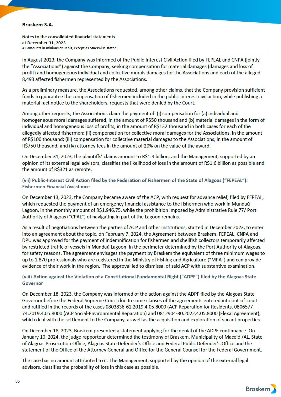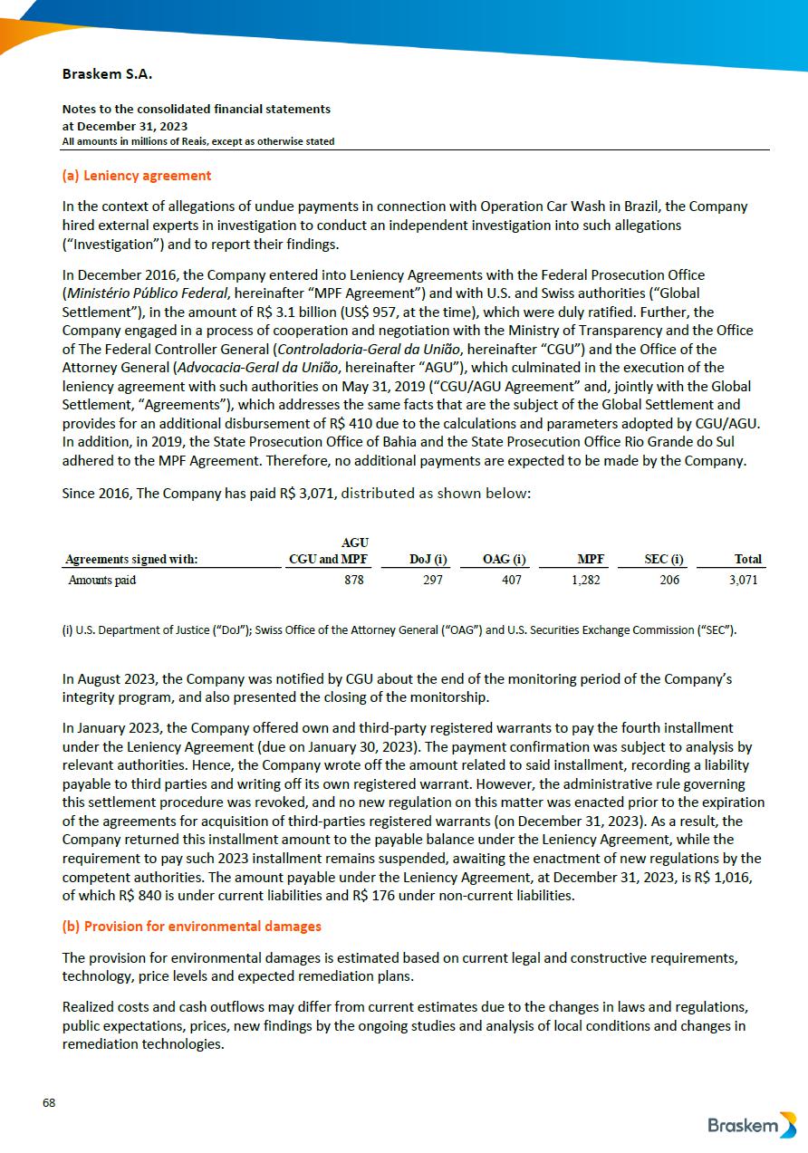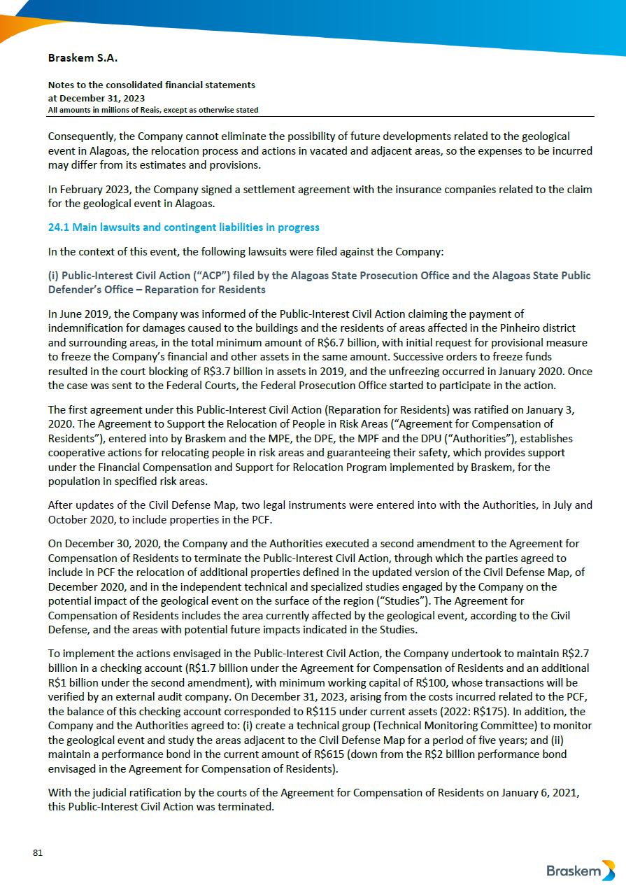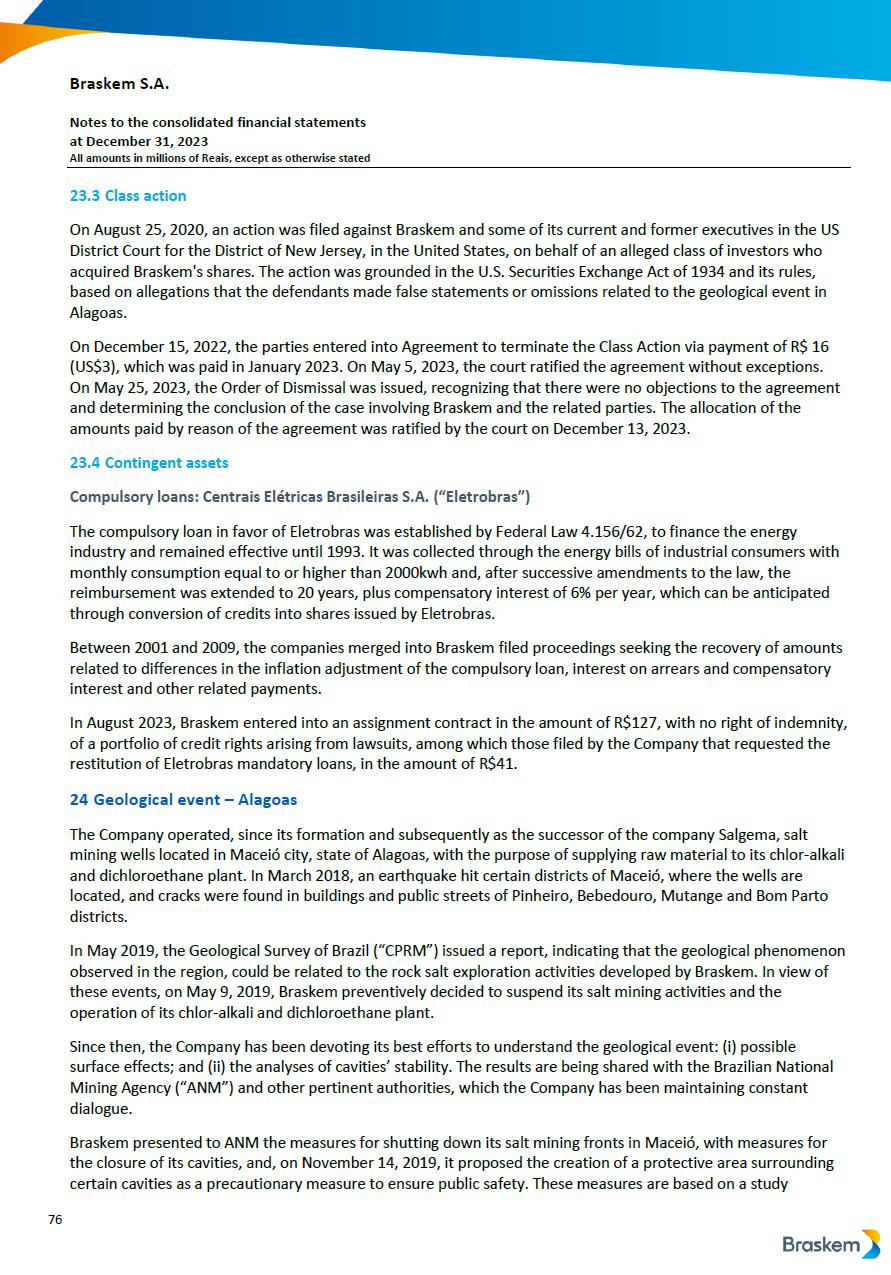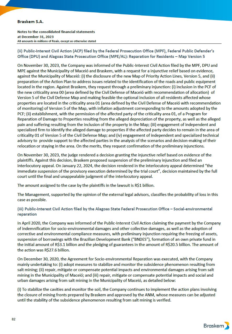 This report on Form 6-K may contain forward-looking statements within the meaning of the Private Securities Litigation Reform Act of 1995. These statements are statements that are not historical facts, and are based on our management’s current view and estimates of future economic and other circumstances, industry conditions, company performance and financial results, including any potential or projected impact of the geological event in Alagoas and related legal proceedings and of COVID-19 on our business, financial condition and operating results. The words “anticipates,” “believes,” “estimates,” “expects,” “plans” and similar expressions, as they relate to the company, are intended to identify forward-looking statements. Statements regarding the potential outcome of legal and administrative proceedings, the implementation of principal operating and financing strategies and capital expenditure plans, the direction of future operations and the factors or trends affecting our financial condition, liquidity or results of operations are examples of forward-looking statements. Such statements reflect the current views of our management and are subject to a number of risks and uncertainties, many of which are outside of the our control. There is no guarantee that the expected events, trends or results will actually occur. The statements are based on many assumptions and factors, including general economic and market conditions, industry conditions, and operating factors. Any changes in such assumptions or factors, including the projected impact of the geological event in Alagoas and related legal proceedings and the unprecedented impact of COVID-19 pandemic on our business, employees, service providers, stockholders, investors and other stakeholders, could cause actual results to differ materially from current expectations. Please refer to our annual report on Form 20-F for the year ended December 31, 2019 filed with the SEC, as well as any subsequent filings made by us pursuant to the Exchange Act, each of which is available on the SEC’s website (www.sec.gov), for a full discussion of the risks and other factors that may impact any forward-looking statements in this presentation.