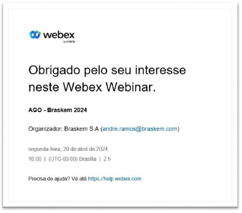 If the Shareholder that has properly requested to participate does not receive from the Company the e-mail with the instructions for access and participation in the Meeting at least 24 hours in advance of its holding (that is, by 04:00 p.m. of April 28, 2024), it shall get in touch with the Company through phone number +55 (11) 3576-9531 – in any event, before 12 noon of April 29, 2024, so that its respective access instructions are resent (or provided over the phone).