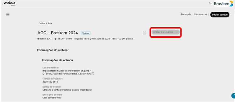 We suggest that Participants access the Digital Platform at least 15 (fifteen) minutes before the beginning of the Meeting, in order to avoid possible operational problems with the tool.