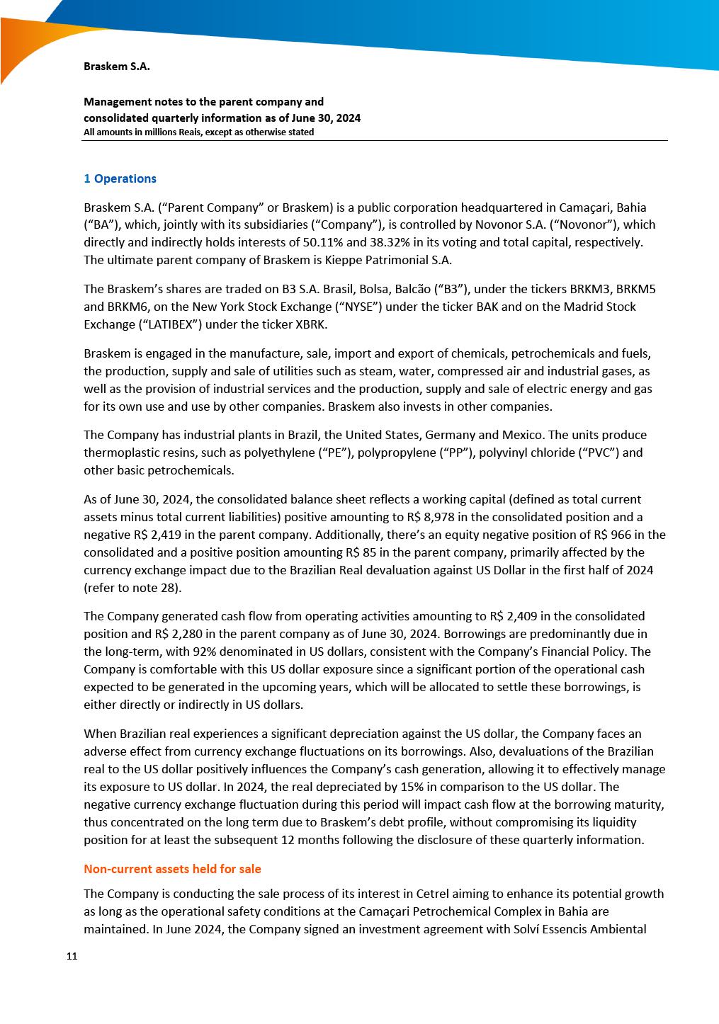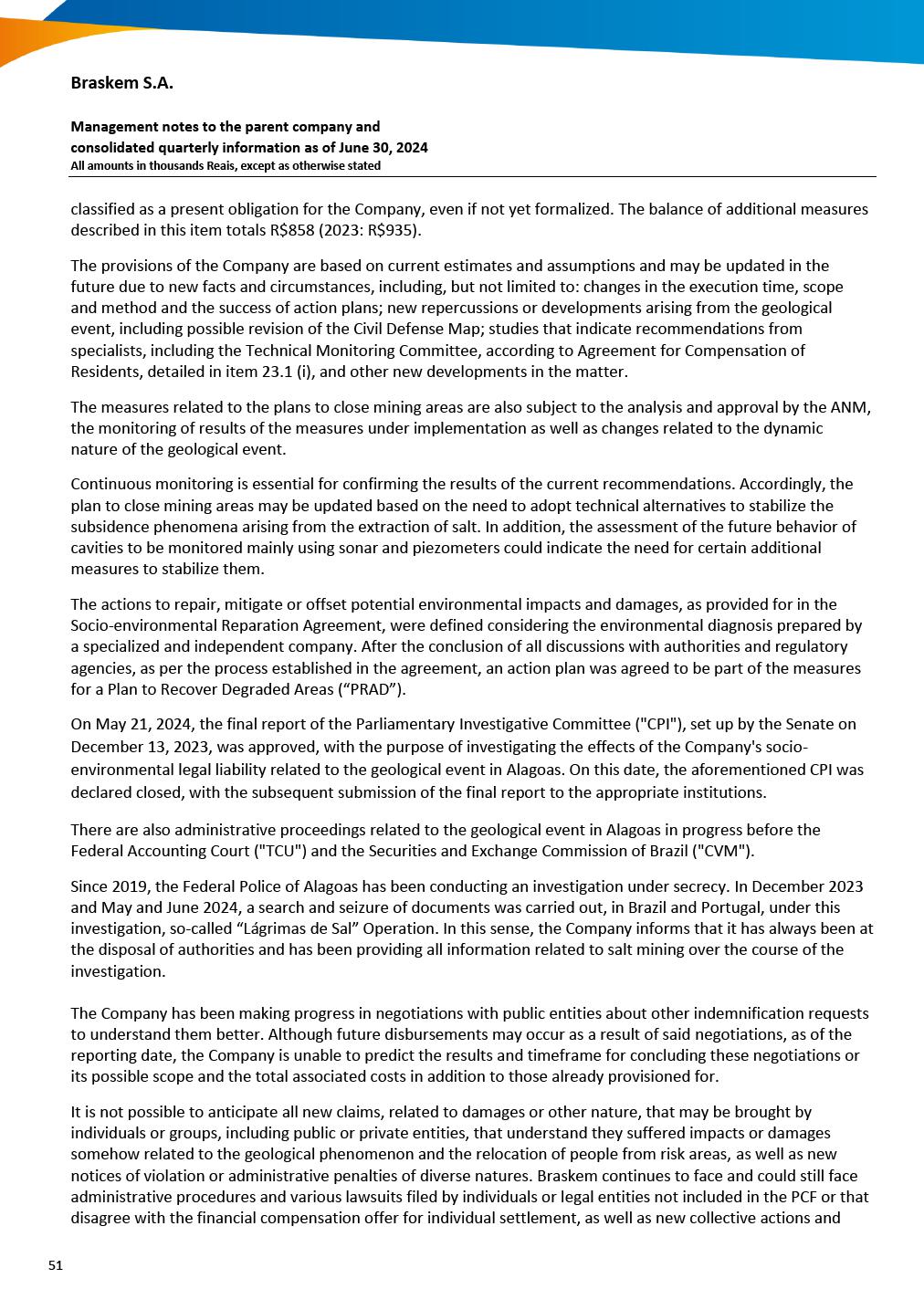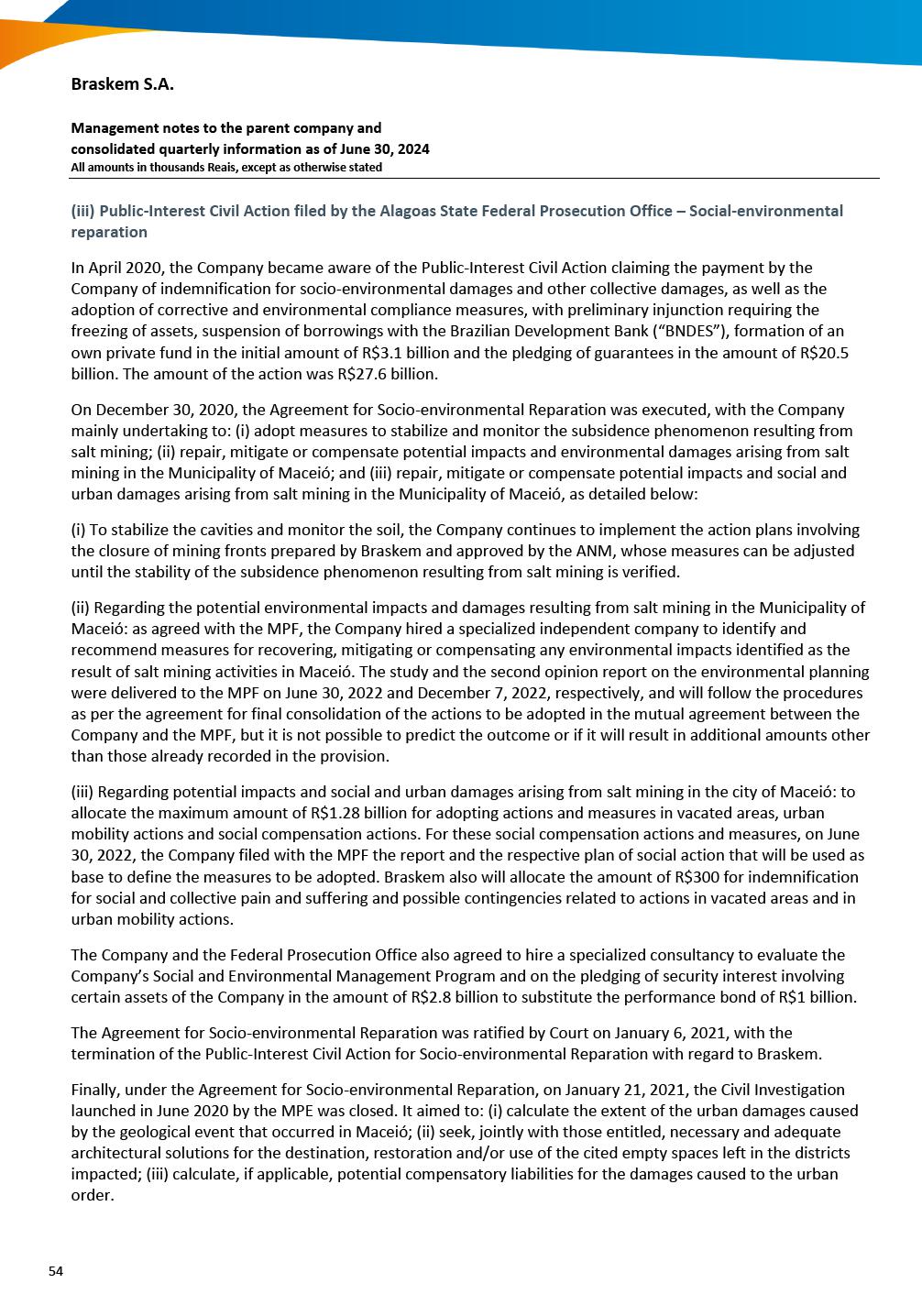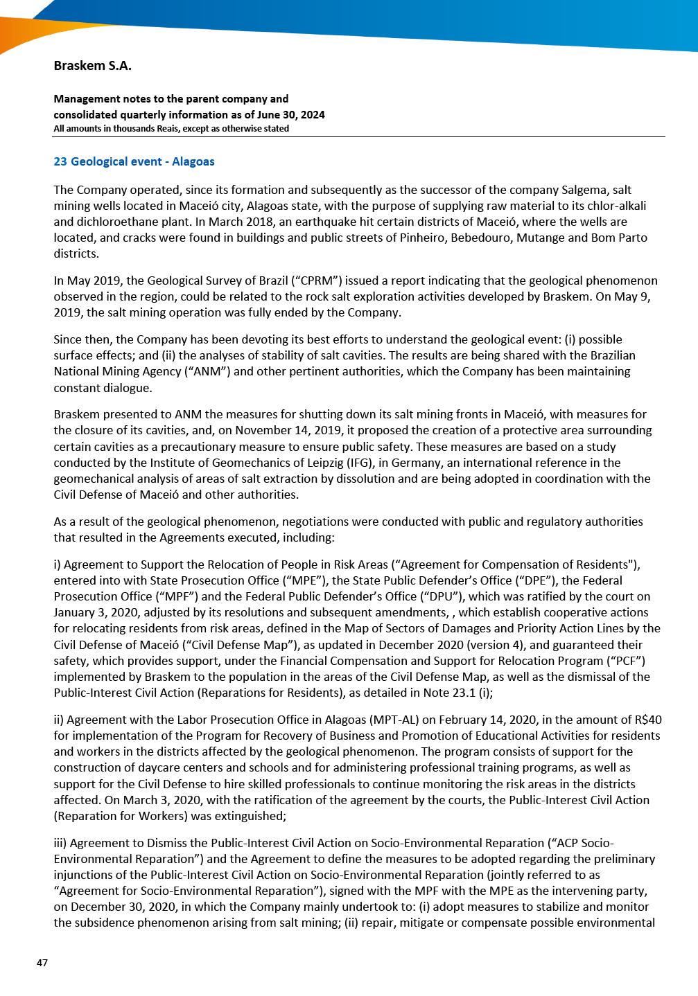 This report on Form 6-K may contain forward-looking statements within the meaning of the Private Securities Litigation Reform Act of 1995. These statements are statements that are not historical facts, and are based on our management’s current view and estimates of future economic and other circumstances, industry conditions, company performance and financial results, including any potential or projected impact of the geological event in Alagoas and related legal proceedings and of COVID-19 on our business, financial condition and operating results. The words “anticipates,” “believes,” “estimates,” “expects,” “plans” and similar expressions, as they relate to the company, are intended to identify forward-looking statements. Statements regarding the potential outcome of legal and administrative proceedings, the implementation of principal operating and financing strategies and capital expenditure plans, the direction of future operations and the factors or trends affecting our financial condition, liquidity or results of operations are examples of forward-looking statements. Such statements reflect the current views of our management and are subject to a number of risks and uncertainties, many of which are outside of the our control. There is no guarantee that the expected events, trends or results will actually occur. The statements are based on many assumptions and factors, including general economic and market conditions, industry conditions, and operating factors. Any changes in such assumptions or factors, including the projected impact of the geological event in Alagoas and related legal proceedings and the unprecedented impact of COVID-19 pandemic on our business, employees, service providers, stockholders, investors and other stakeholders, could cause actual results to differ materially from current expectations. Please refer to our annual report on Form 20-F for the year ended December 31, 2019 filed with the SEC, as well as any subsequent filings made by us pursuant to the Exchange Act, each of which is available on the SEC’s website (www.sec.gov), for a full discussion of the risks and other factors that may impact any forward-looking statements in this presentation.