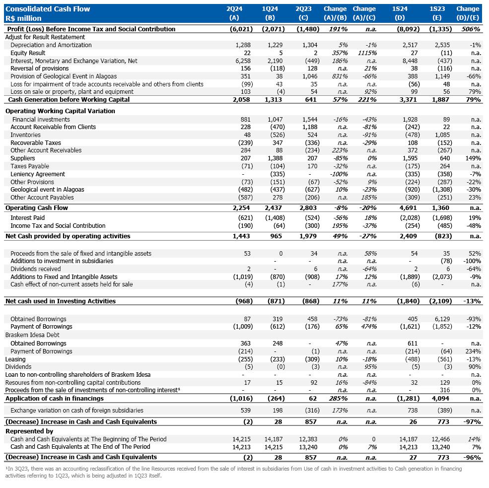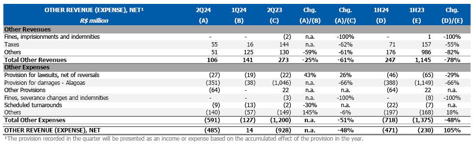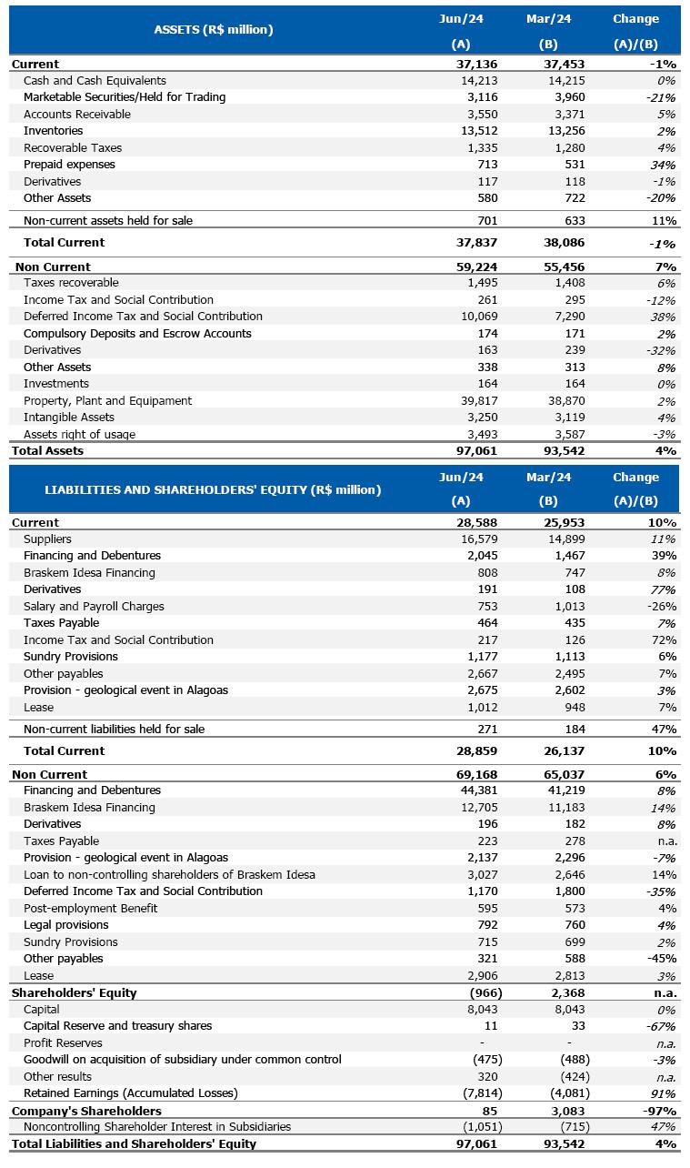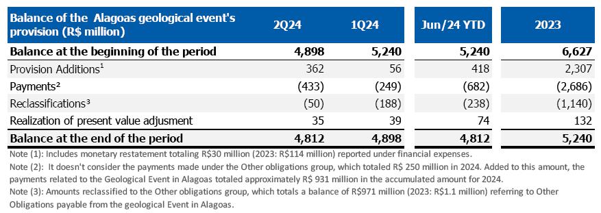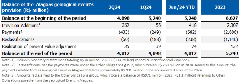 For more information, please check explanatory note 23 (“Geological event – ​​Alagoas”) of the consolidated and individual Financial Statements as of June 30, 2024.