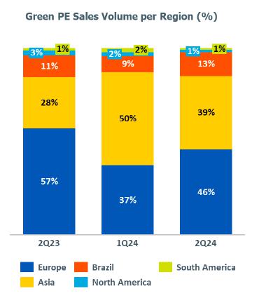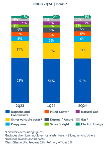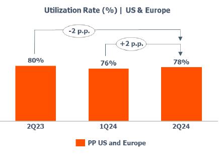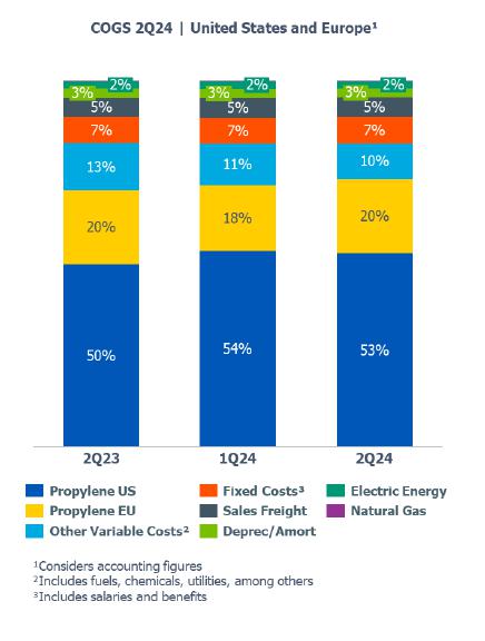 Compared to 2Q23, the spread was higher (+3%), mainly impacted by the higher PP price in Europe (+1%) in 2Q24, explained by the greater restriction on the entry of imports, as previously mentioned.