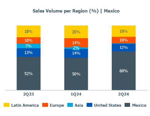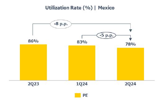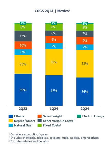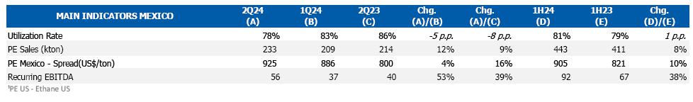PE spreads in Mexico were higher (+4%) than in 1Q24, impacted by higher PE prices in the US (+4%), as explained above, while Ethane remained in line with 1Q24.