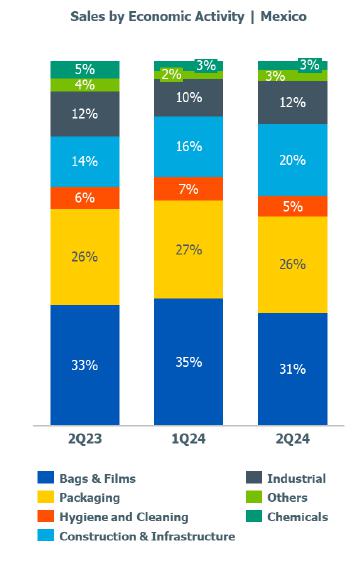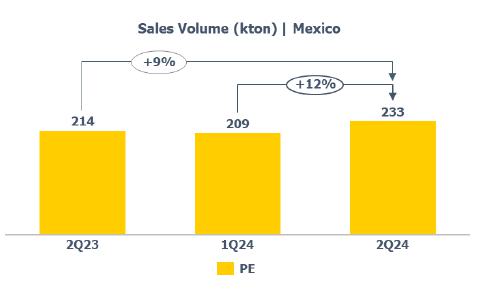 Regarding sales volume, the inventory optimization carried out by the Company in the quarter partially offset the lower availability of products for sales. In Mexico, the segment achieved the highest PE sales volume since 3Q17, with sales of 233 kt in the period, 12% above the previous quarter.