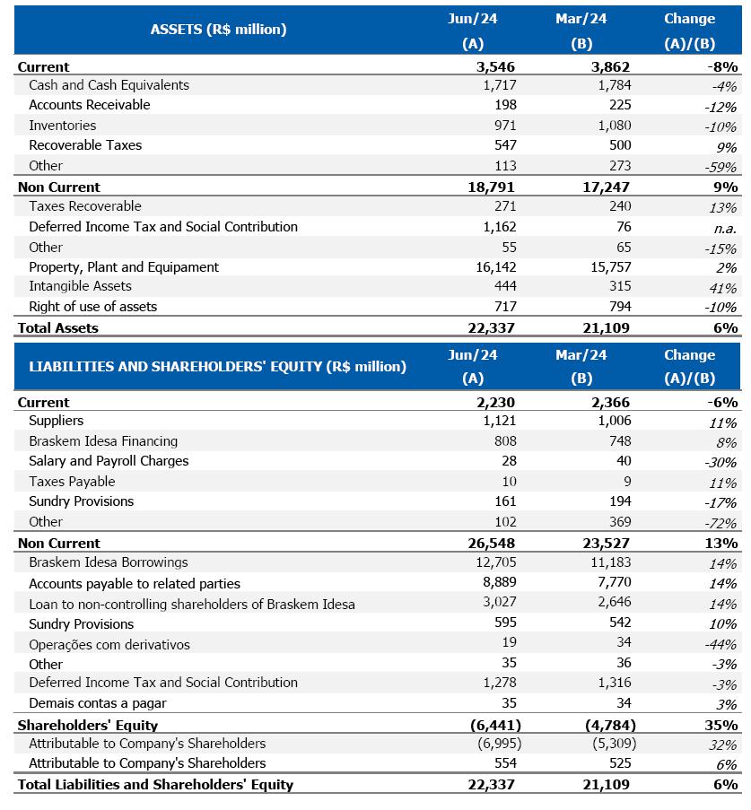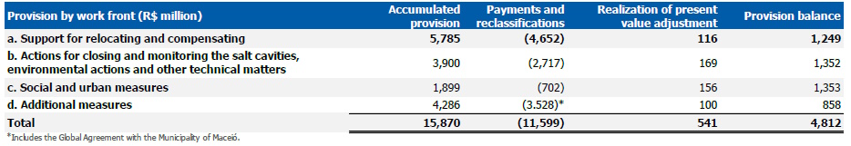 The Management of Braskem, based on its assessment and that of its external advisors, considering the measures recommended on technical studies in the short and long-term and the existing information and refined estimates of expenses for implementing several measures connected with the geological event in Alagoas, presents the following changes in the period: