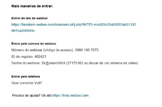 In order to have access to the Meeting, Shareholders must request an access link to the Meeting via email to braskem-ri@braskem.com, by November 26, 2024. The request must be accompanied by the necessary documents to participate in the meeting. Meeting, which were duly indicated in the Call Notice, in the Management Proposal and in this Manual for Participation in the Meeting.
