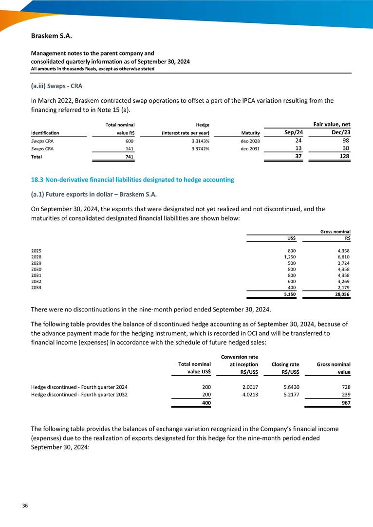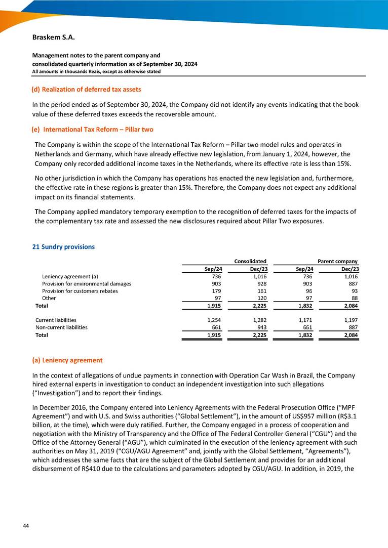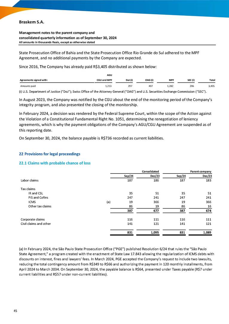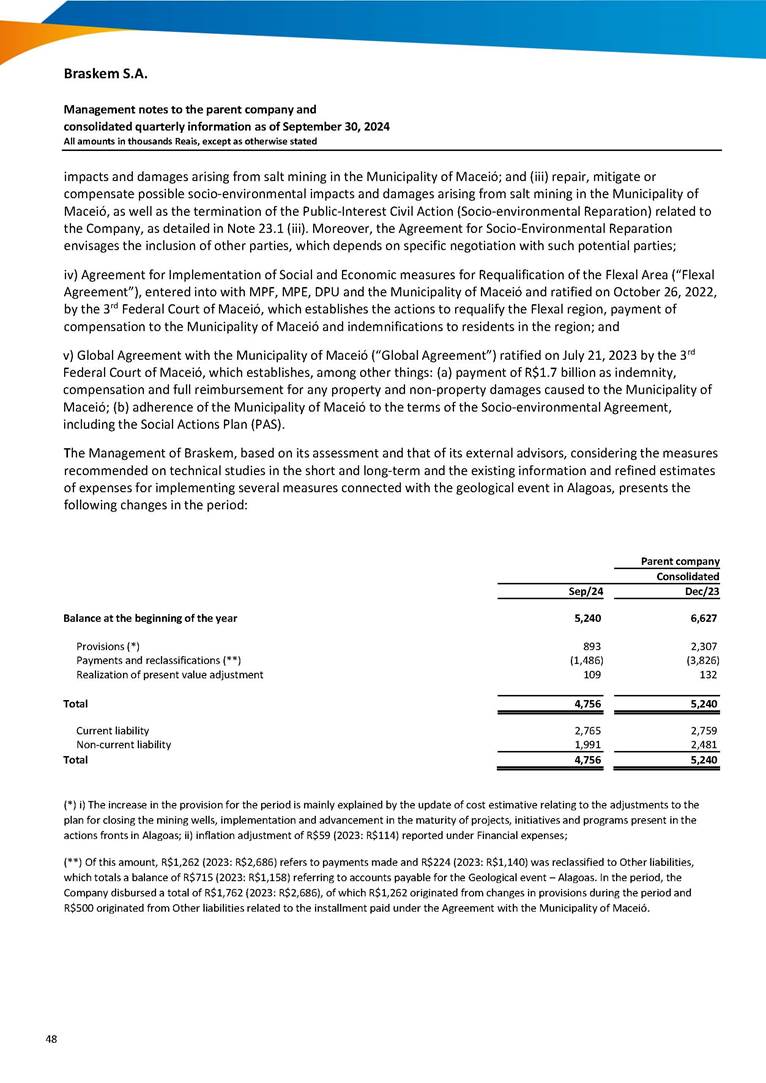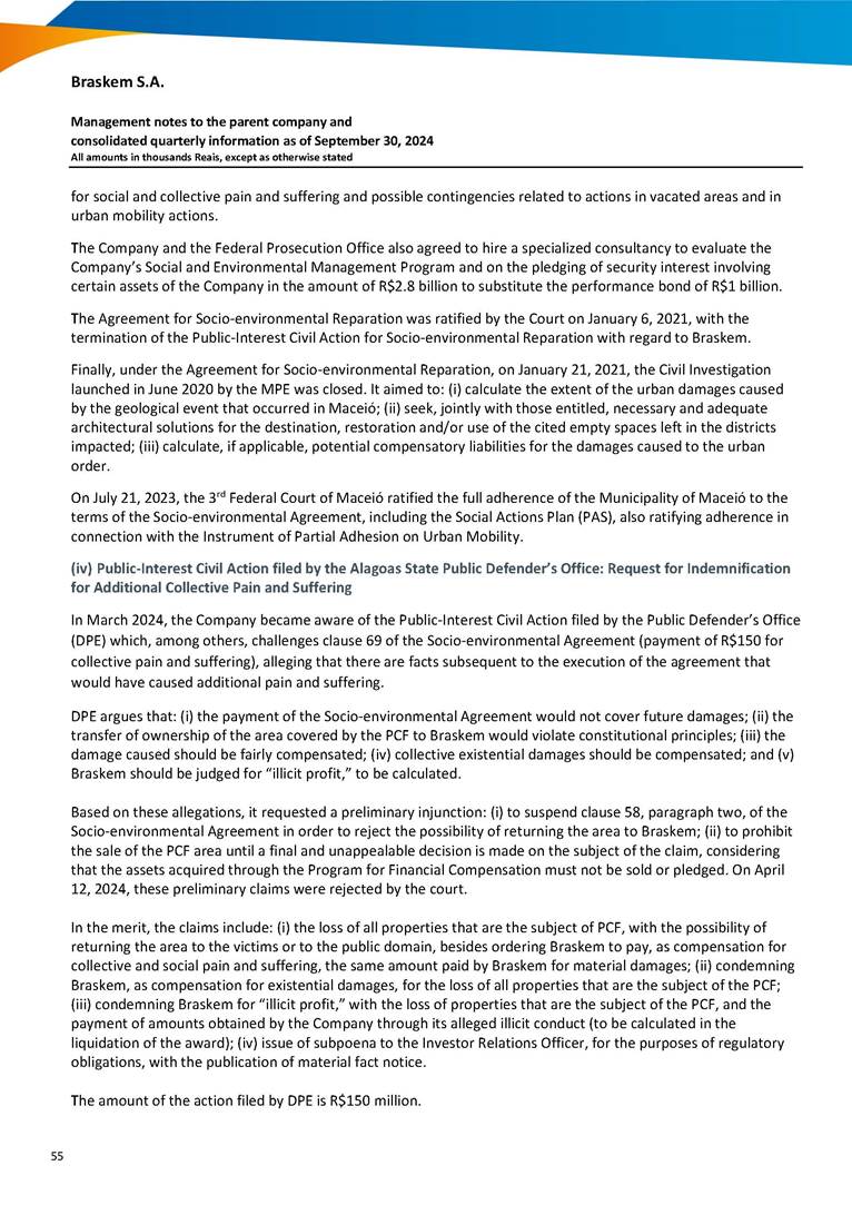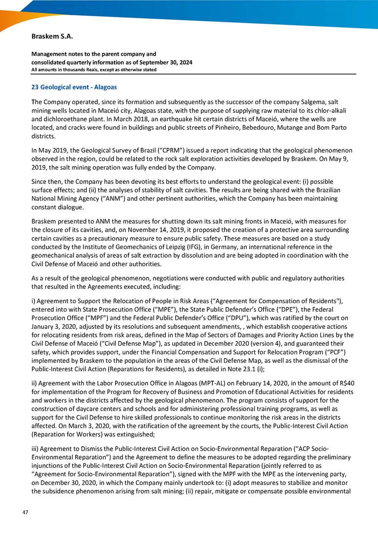 This report on Form 6-K may contain forward-looking statements within the meaning of the Private Securities Litigation Reform Act of 1995. These statements are statements that are not historical facts, and are based on our management’s current view and estimates of future economic and other circumstances, industry conditions, company performance and financial results, including any potential or projected impact of the geological event in Alagoas and related legal proceedings and of COVID-19 on our business, financial condition and operating results. The words “anticipates,” “believes,” “estimates,” “expects,” “plans” and similar expressions, as they relate to the company, are intended to identify forward-looking statements. Statements regarding the potential outcome of legal and administrative proceedings, the implementation of principal operating and financing strategies and capital expenditure plans, the direction of future operations and the factors or trends affecting our financial condition, liquidity or results of operations are examples of forward-looking statements. Such statements reflect the current views of our management and are subject to a number of risks and uncertainties, many of which are outside of the our control. There is no guarantee that the expected events, trends or results will actually occur. The statements are based on many assumptions and factors, including general economic and market conditions, industry conditions, and operating factors. Any changes in such assumptions or factors, including the projected impact of the geological event in Alagoas and related legal proceedings and the unprecedented impact of COVID-19 pandemic on our business, employees, service providers, stockholders, investors and other stakeholders, could cause actual results to differ materially from current expectations. Please refer to our annual report on Form 20-F for the year ended December 31, 2019 filed with the SEC, as well as any subsequent filings made by us pursuant to the Exchange Act, each of which is available on the SEC’s website (www.sec.gov), for a full discussion of the risks and other factors that may impact any forward-looking statements in this presentation.
