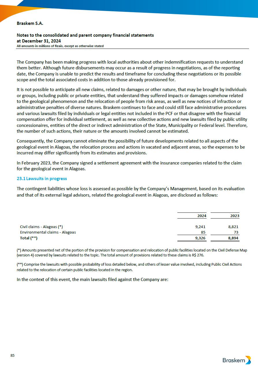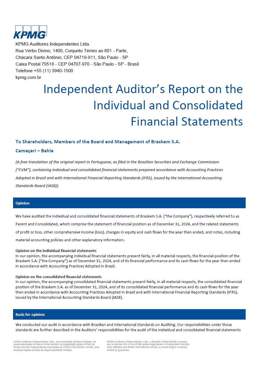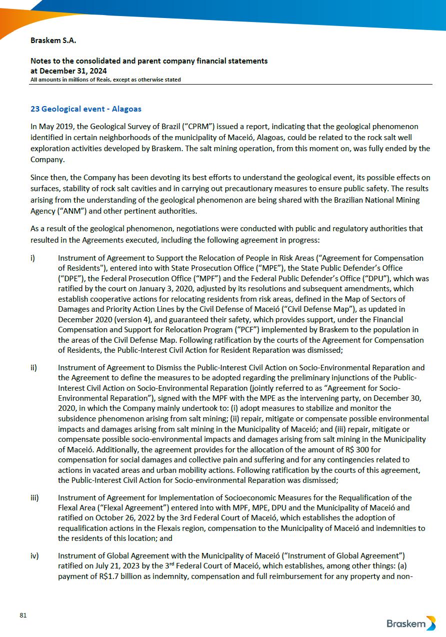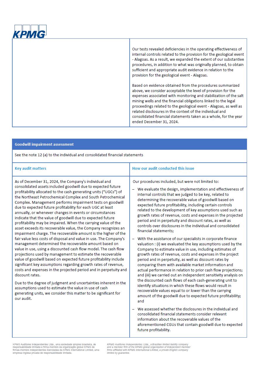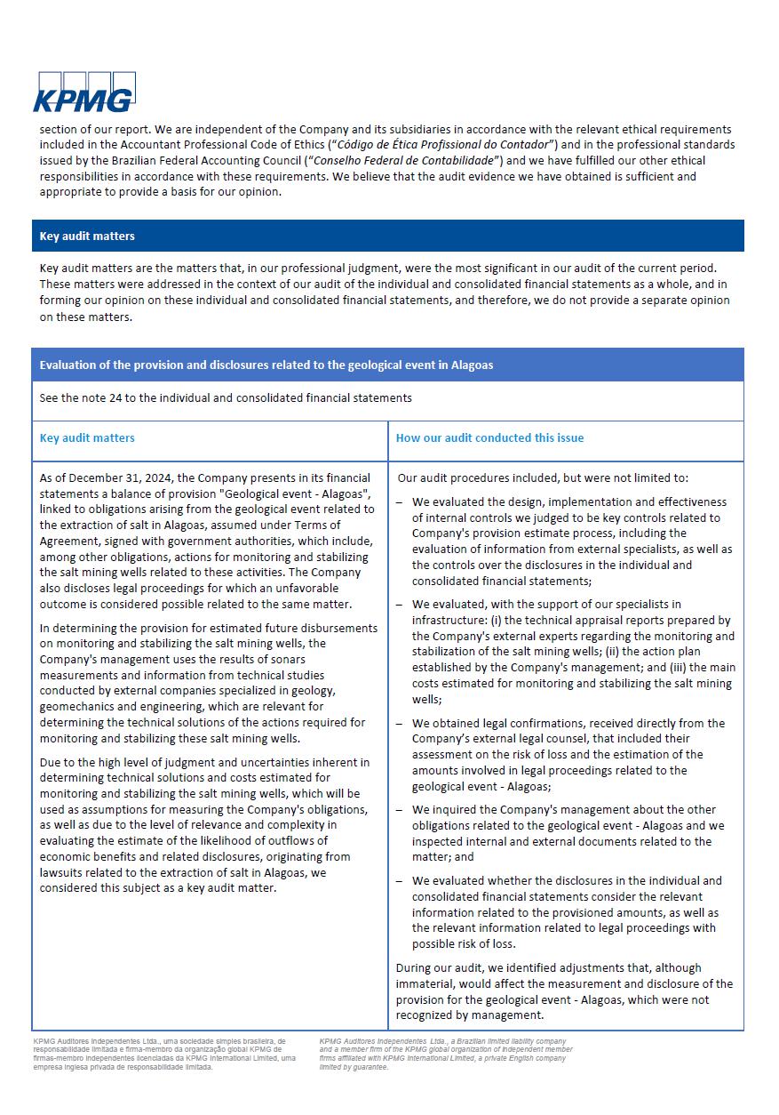 This report on Form 6-K may contain forward-looking statements within the meaning of the Private Securities Litigation Reform Act of 1995. These statements are statements that are not historical facts, and are based on our management’s current view and estimates of future economic and other circumstances, industry conditions, company performance and financial results, including any potential or projected impact of the geological event in Alagoas and related legal proceedings and of COVID-19 on our business, financial condition and operating results. The words “anticipates,” “believes,” “estimates,” “expects,” “plans” and similar expressions, as they relate to the company, are intended to identify forward-looking statements. Statements regarding the potential outcome of legal and administrative proceedings, the implementation of principal operating and financing strategies and capital expenditure plans, the direction of future operations and the factors or trends affecting our financial condition, liquidity or results of operations are examples of forward-looking statements. Such statements reflect the current views of our management and are subject to a number of risks and uncertainties, many of which are outside of the our control. There is no guarantee that the expected events, trends or results will actually occur. The statements are based on many assumptions and factors, including general economic and market conditions, industry conditions, and operating factors. Any changes in such assumptions or factors, including the projected impact of the geological event in Alagoas and related legal proceedings and the unprecedented impact of COVID-19 pandemic on our business, employees, service providers, stockholders, investors and other stakeholders, could cause actual results to differ materially from current expectations. Please refer to our annual report on Form 20-F for the year ended December 31, 2019 filed with the SEC, as well as any subsequent filings made by us pursuant to the Exchange Act, each of which is available on the SEC’s website (www.sec.gov), for a full discussion of the risks and other factors that may impact any forward-looking statements in this presentation.