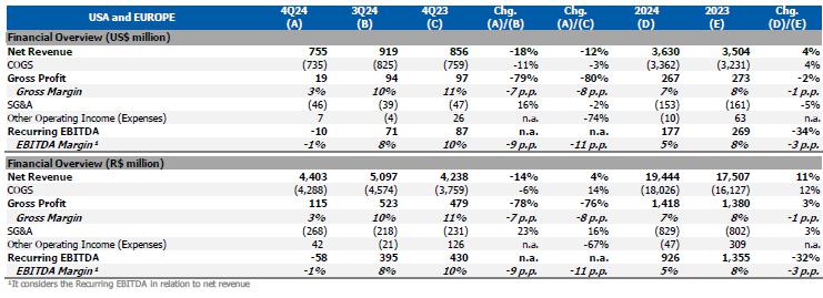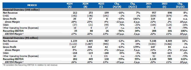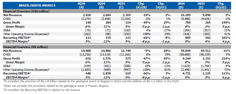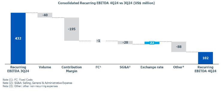 In this context, the Recurring EBITDA for the Brazil/South America segment was lower compared to 3Q24.
