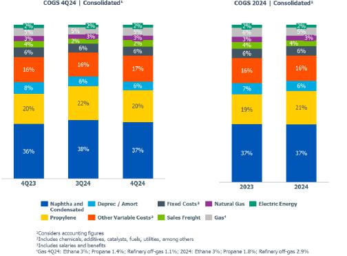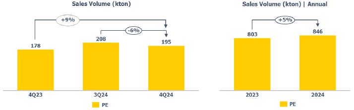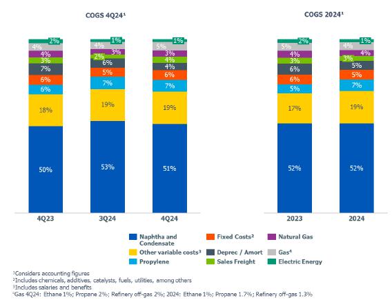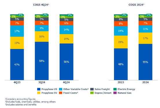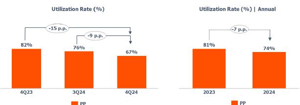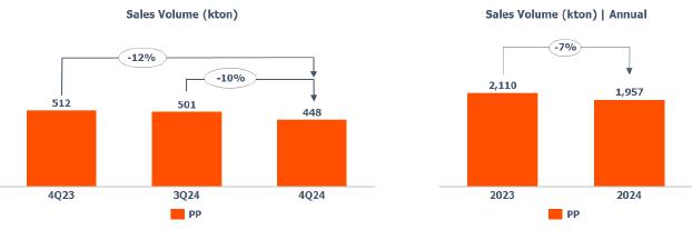 oPP price compared to 3Q24 decreased (-7%), due to lower seasonal demand, which was partially offset by the postponement of maintenance shutdowns because of the early onset of the cold season in the region, which affected energy costs in the production chain.