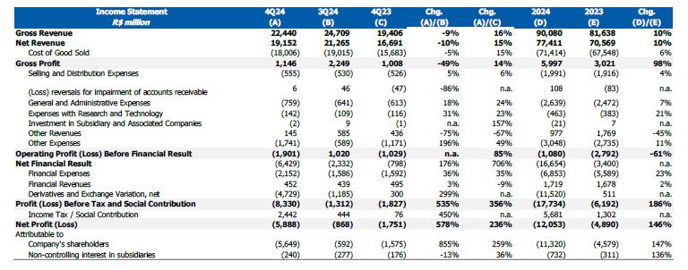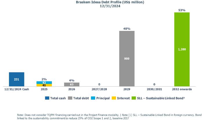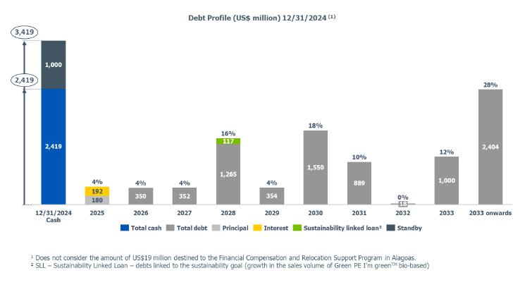 At the end of December 2024, the Company's cash position was US$2.4 billion, sufficient to cover the payment of all debts coming due in the next 47 months, not considering the international stand-by credit facility of US$1.0 billion available until December 2026.