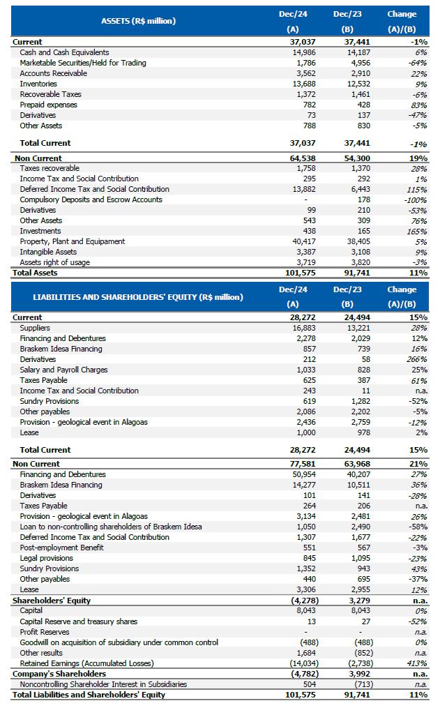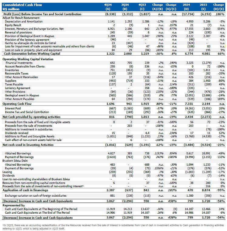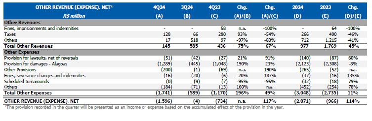 For more information, please check explanatory note 23 ("Geological event – Alagoas") of the consolidated and individual Financial Statements as of December 31, 2024.