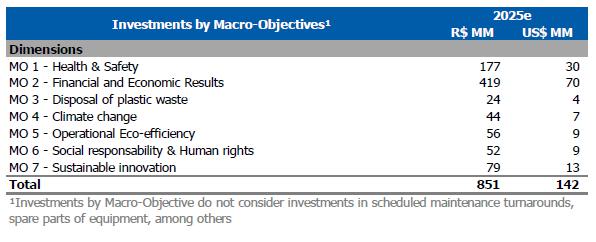 oThe price of main chemicals decreased (-12%) compared to the previous quarter, mainly due to: (i) lower benzene price (-18%), explained by increased supply in the region, with the resumption of operations and lower demand for derivatives, especially in the styrene chain, due to seasonality and reduced exports; (ii) lower propylene price (-21%) in the United States, reflecting lower utilization rates of PP plants due to higher inventories and reduced demand in the processing chain; and (iii) lower gasoline price (-12%), influenced by the end of the driving season in the United States.