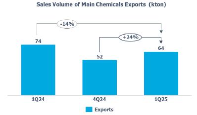 ·Spreads on Main Chemicals[5]: increase compared to 4Q24 (+6%).