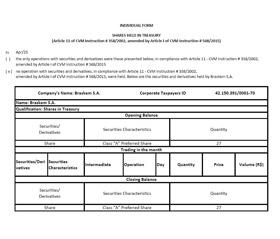 This Notice to the Market may contain forward-looking statements. These statements are not historical facts, but rather are based on the current view and estimates of the Company's management regarding future economic and other circumstances, industry conditions, financial performance and results, including any potential or projected impact regarding the geological event in Alagoas and related legal procedures on the Company's business, financial condition and operating results. The words “project,” “believe,” “estimate,” “expect,” “plan”, “objective” and other similar expressions, when referring to the Company, are used to identify forward-looking statements. Statements related to the possible outcome of legal and administrative proceedings, implementation of operational and financing strategies and investment plans, guidance on future operations, the objective of expanding its efforts to achieve the sustainable macro-objectives disclosed by the Company, as well as factors or trends that affect the financial condition, liquidity or operating results of the Company are examples of forward-looking statements. Such statements reflect the current views of the Company's management and are subject to various risks and uncertainties, many of which are beyond the Company’s control. There is no guarantee that the events, trends or expected results will actually occur. The statements are based on various assumptions and factors, including, but not limited to, general economic and market conditions, industry conditions and operating factors, availability, development and financial access to new technologies. Any change in these assumptions or factors, including the projected impact from the joint venture and its development of technologies, from the geological event in Alagoas and related legal procedures and the unprecedented impact on businesses, employees, service providers, shareholders, investors and other stakeholders of the Company could cause effective results to differ significantly from current expectations. For a comprehensive description of the risks and other factors that could impact any forward-looking statements in this document, especially the factors discussed in the sections, see the reports filed with the Brazilian Securities and Exchange Commission (CVM). This Notice to the Market does not constitute any offer of securities for sale in Brazil. No securities may be offered or sold in Brazil without being registered or exempted from registration, and any public offer of securities carried out in Brazil must be made through a prospectus, which would be made available by Braskem and contain detailed information on Braskem and its management, as well as its financial statements.