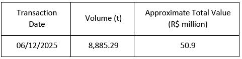 Spot purchase and sale contract for polymer grade propylene, from the Alberto Pasqualini Refinery (“REFAP”), between Braskem, as buyer, and Petrobras, as seller, which reached a new amount of R$50 million on 06/12/2025.