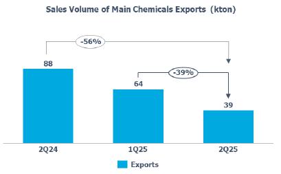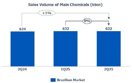 Main chemicals sales volume[1]: in the Brazilian market, remained in line while compared to 1Q25, mainly explained by the higher sales volume of benzene and propylene due to a demand increase in the Brazilian market. This effect was partially offset by the lower sales volume of (i) paraxylene due to the scheduled shutdown of its production unit that occurred in 2Q25; and (ii) ethylene due to the reduction in demand in the Brazilian market during the period.
