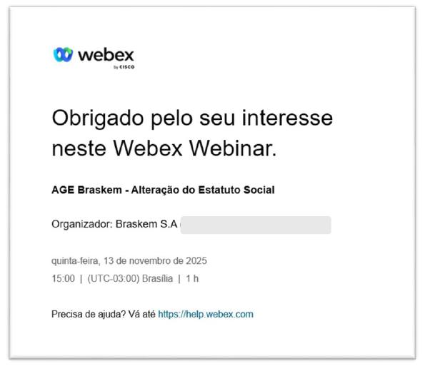 The shareholders of BRASKEM S.A. (“Shareholders” and “Company”, respectively) are hereby called to meet at an Extraordinary General Meeting, in an exclusively digital manner, pursuant to article 5, paragraph 2, item I, and article 28, paragraphs 2 and 3, of CVM Resolution No. 81, (“CVM Resolution 81”), to be held on November 13, 2025, at 3:00 p.m., through digital platform Webex (“Digital Platform” and “Meeting”, respectively), to resolve upon the following Agenda: